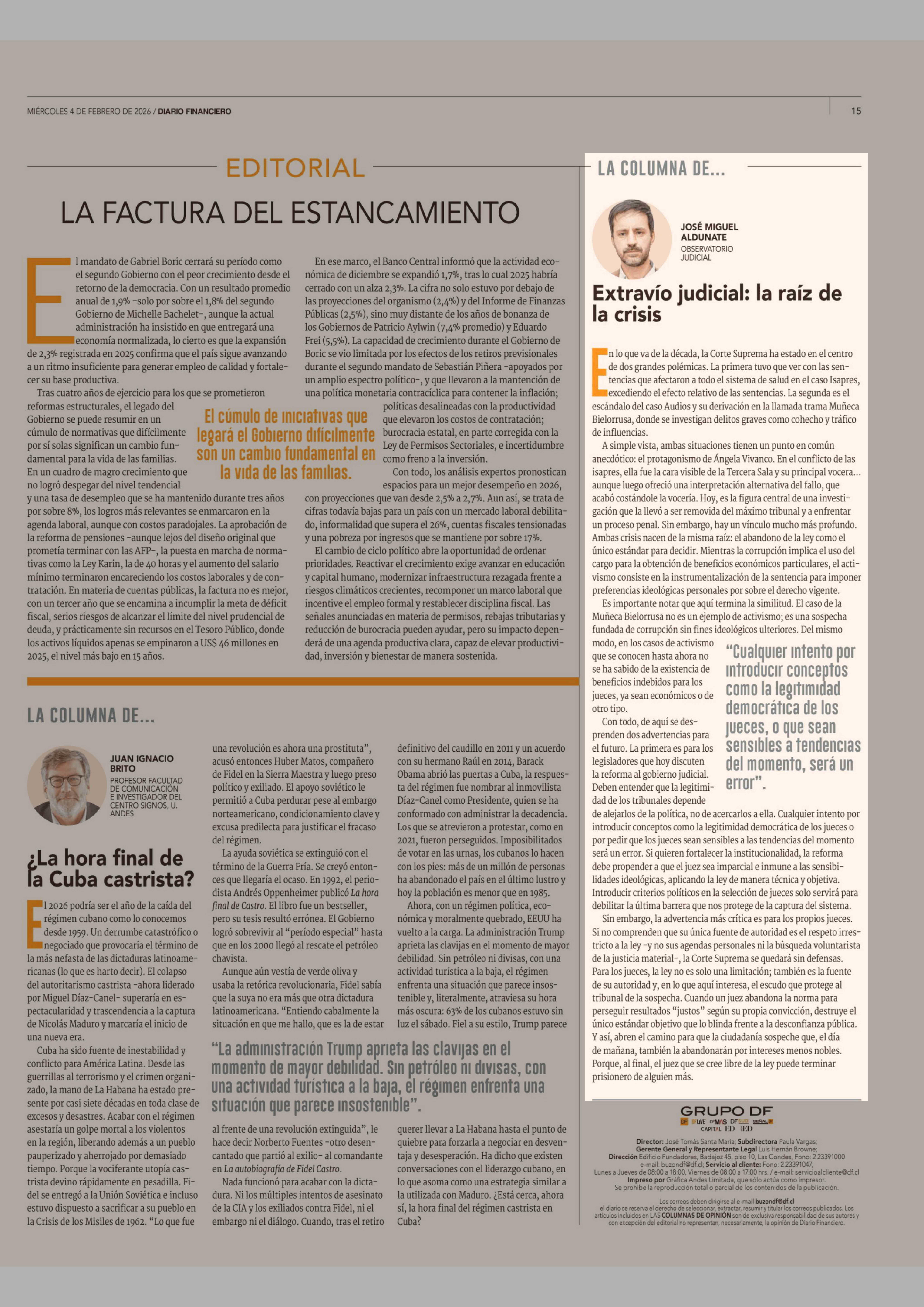 Columnas de Opinión: Extravío judicial: la raíz de la crisis 04-02-2026 Diario Financiero |