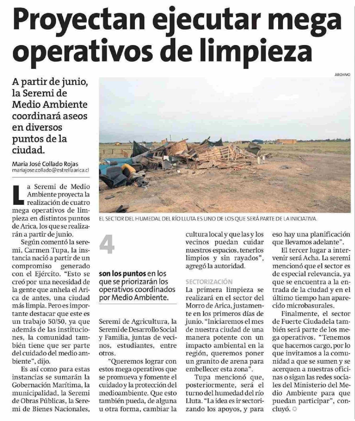 Proyectan ejecutar mega operativos de limpieza 04-05-2025 La Estrella de Arica |
