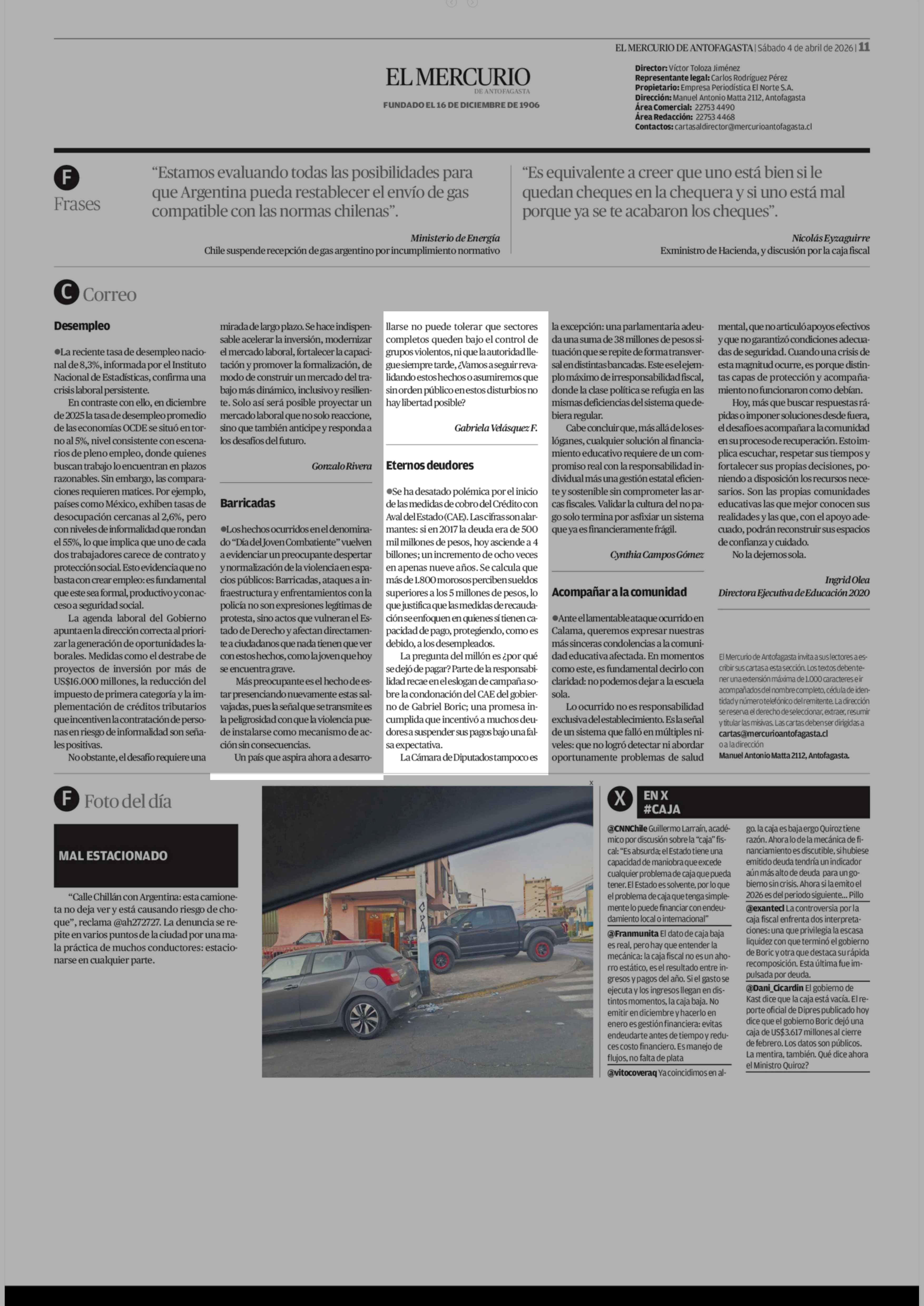 CARTAS: Barricadas 04-04-2026 El Mercurio de Antofagasta |