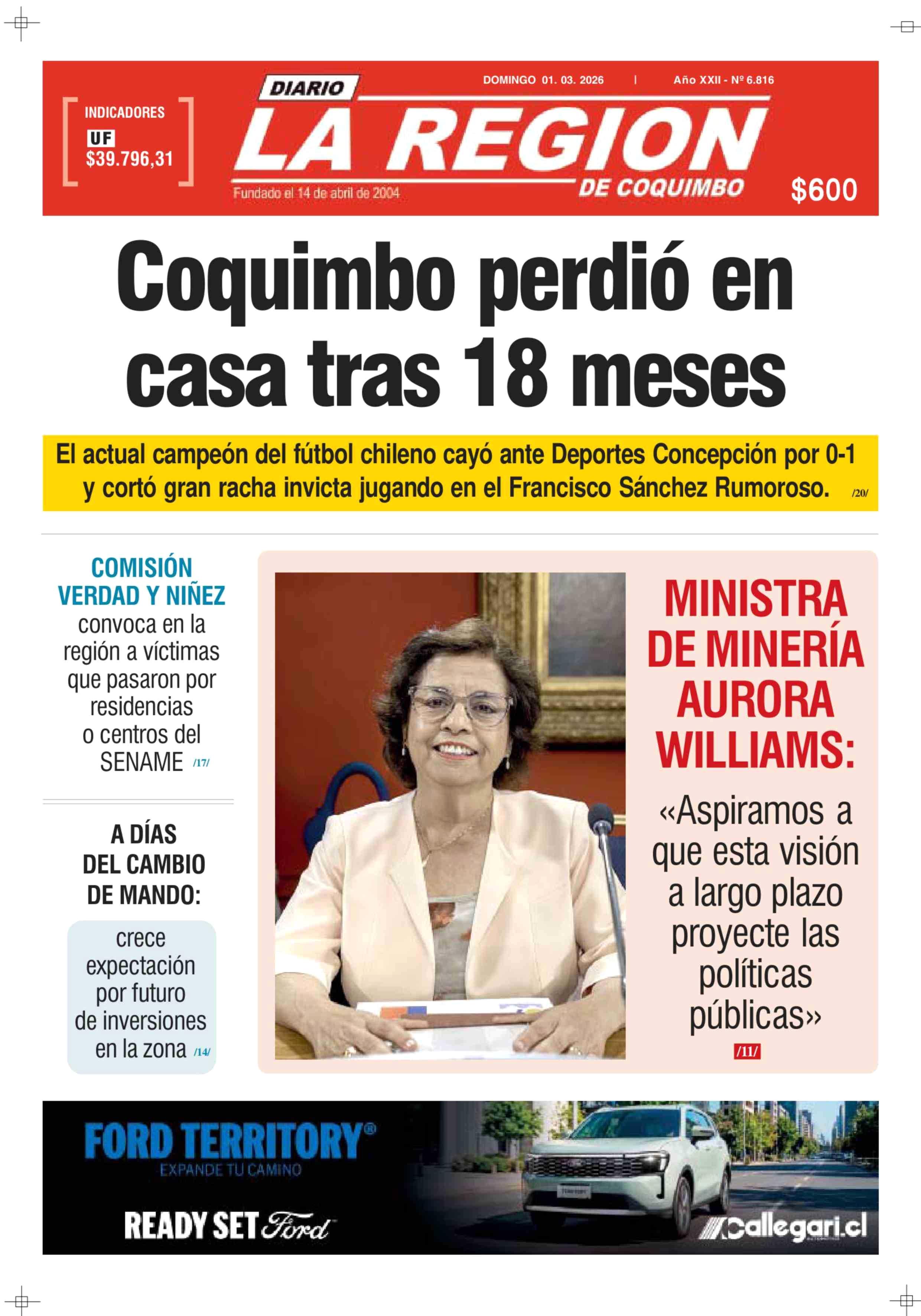 | Fecha: | 01-03-2026 | Sector: | Portada | Región: | Región de Coquimbo |