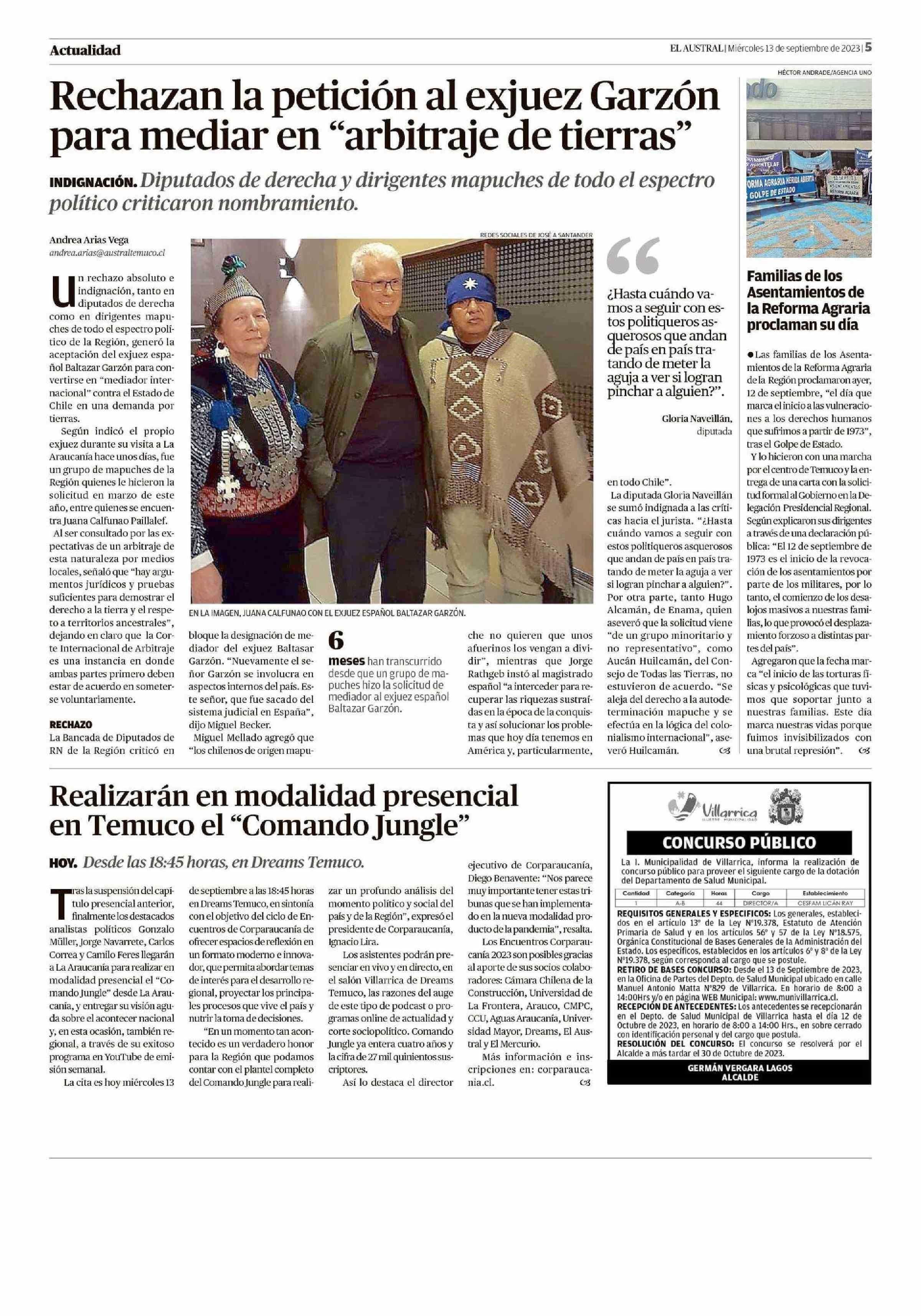 | Fecha: | 13-09-2023 | Sector: | Noticia general | Región: | Región de la Araucanía |