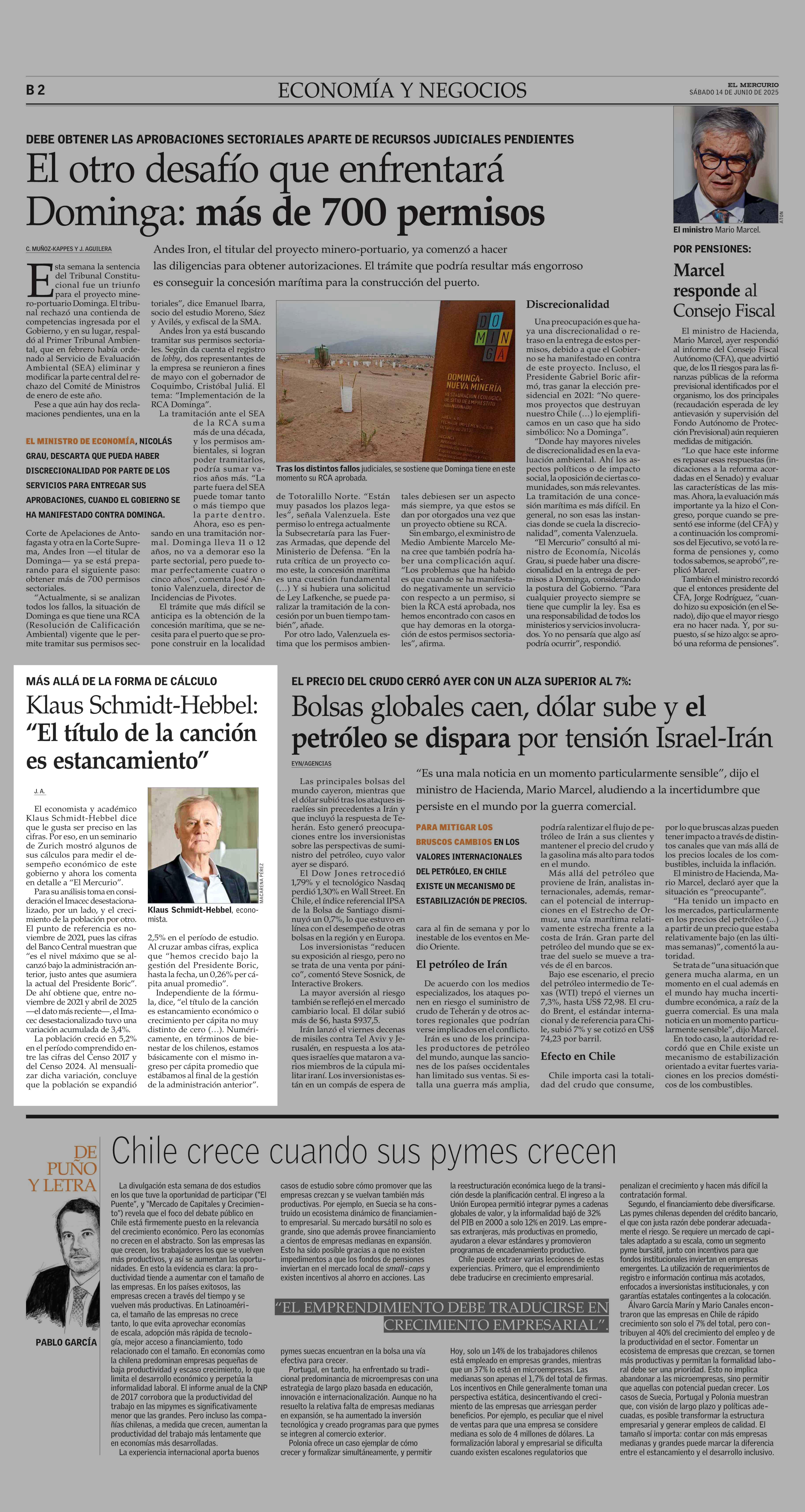 Klaus Schmidt-Hebbel: “El título de la canción es estancamiento” 14-06-2025 El Mercurio |