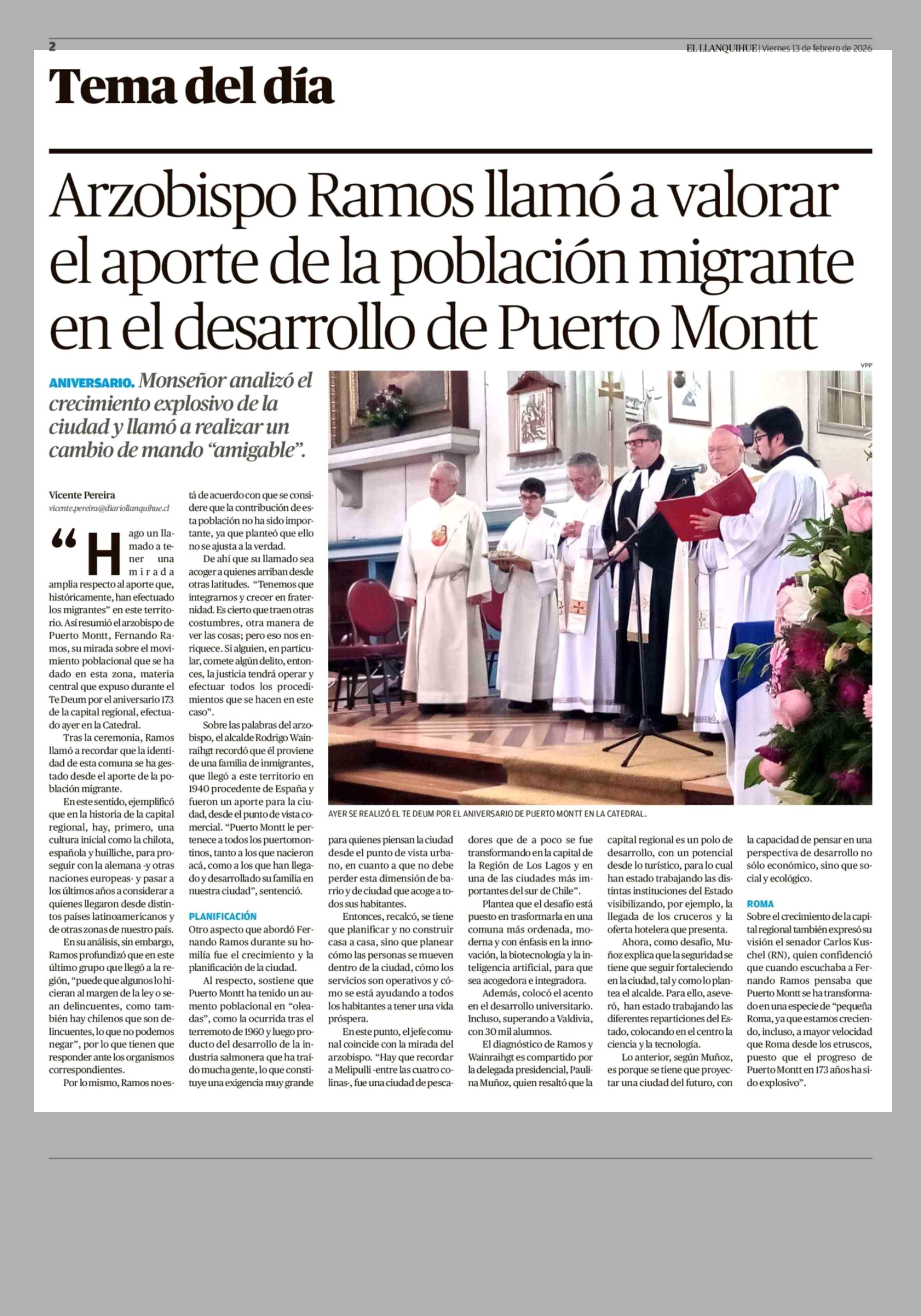 Título: Arzobispo Ramos llamó a valorar el aporte de la población migrante en el desarrollo de Puerto Montt