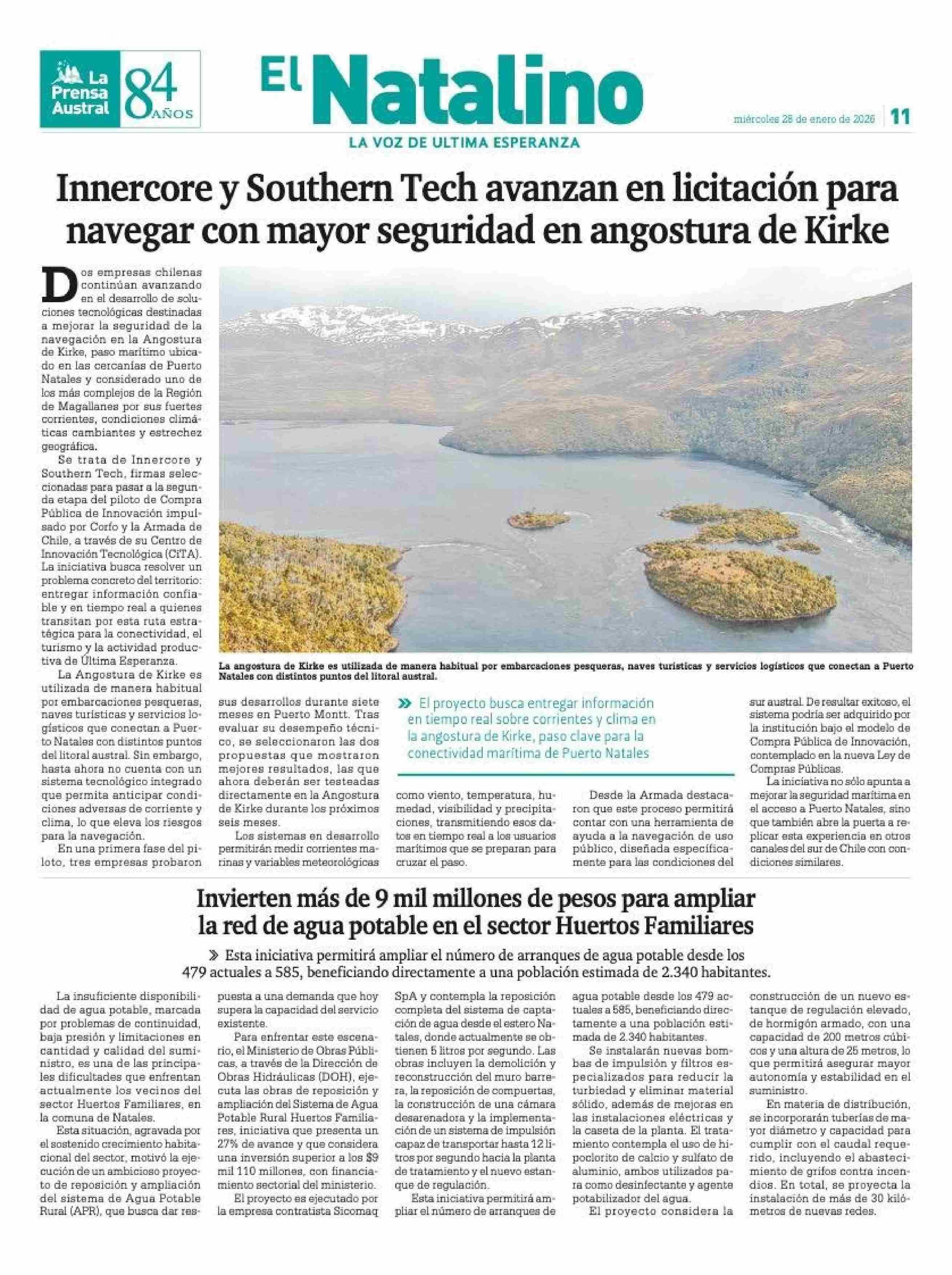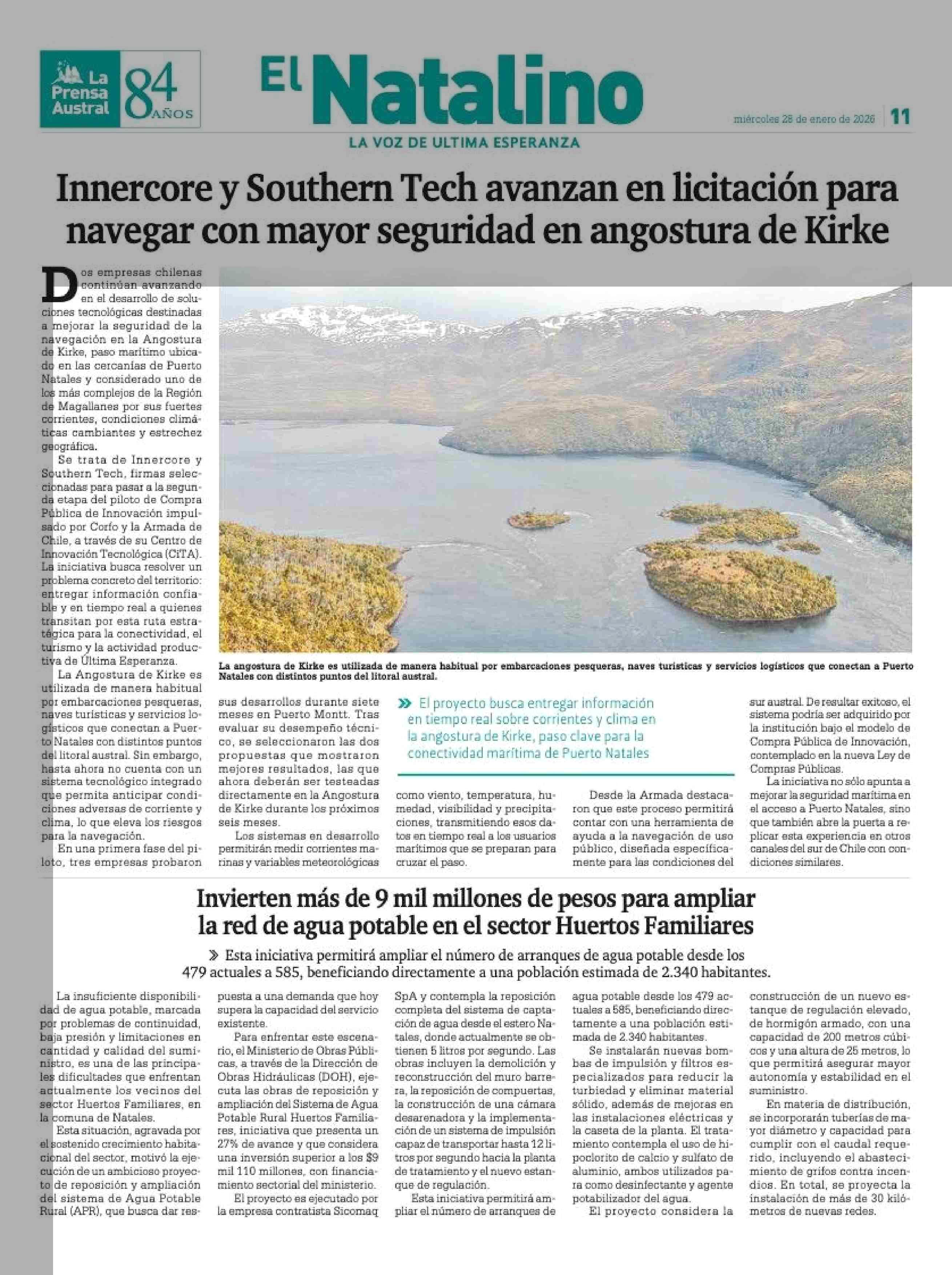 Título: Innercore y Southern Tech avanzan en licitación para navegar con mayor seguridad en angostura de Kirke