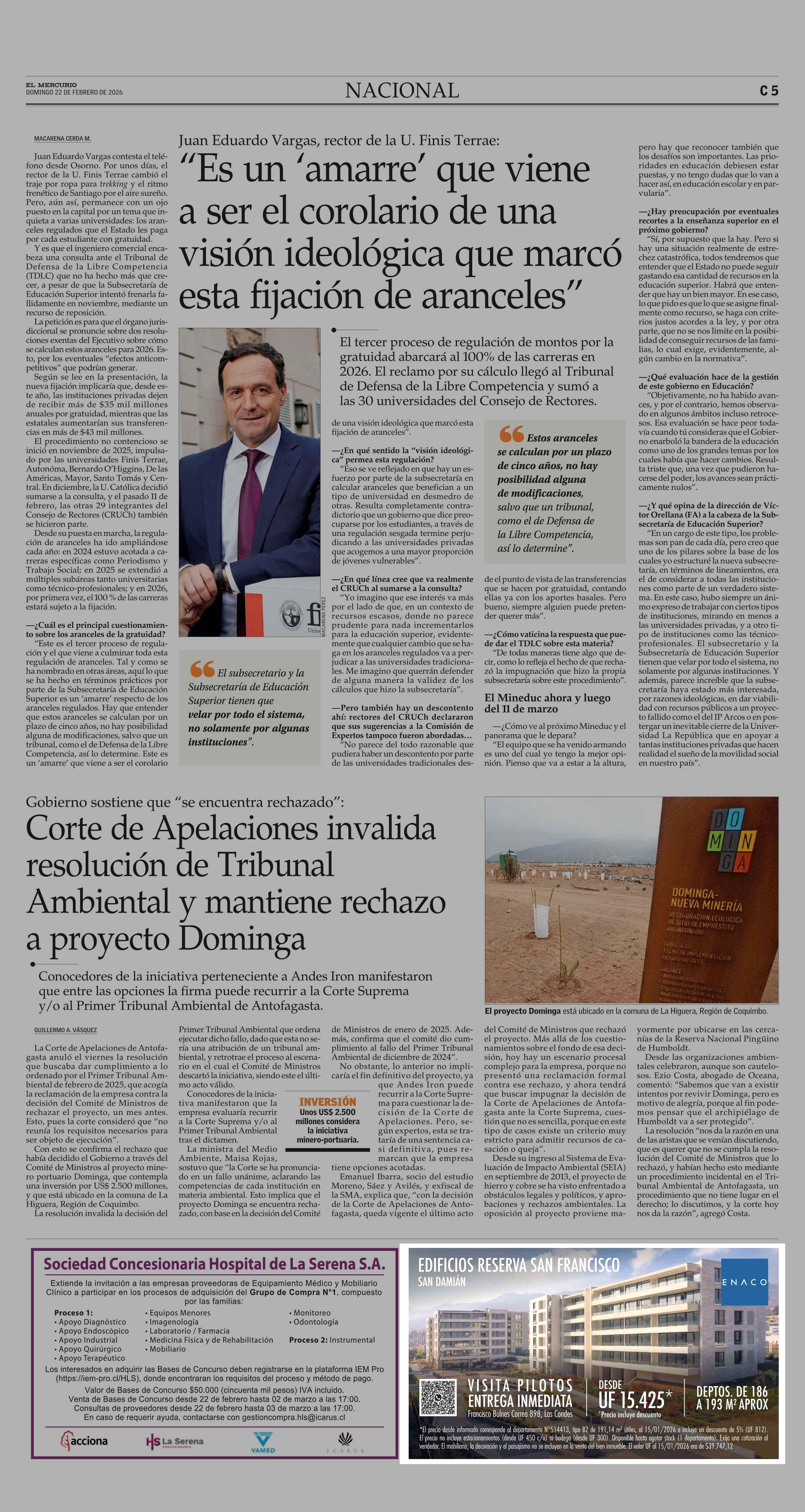 AVISO INMOBILIARIO: enaco 22-02-2026 El Mercurio |