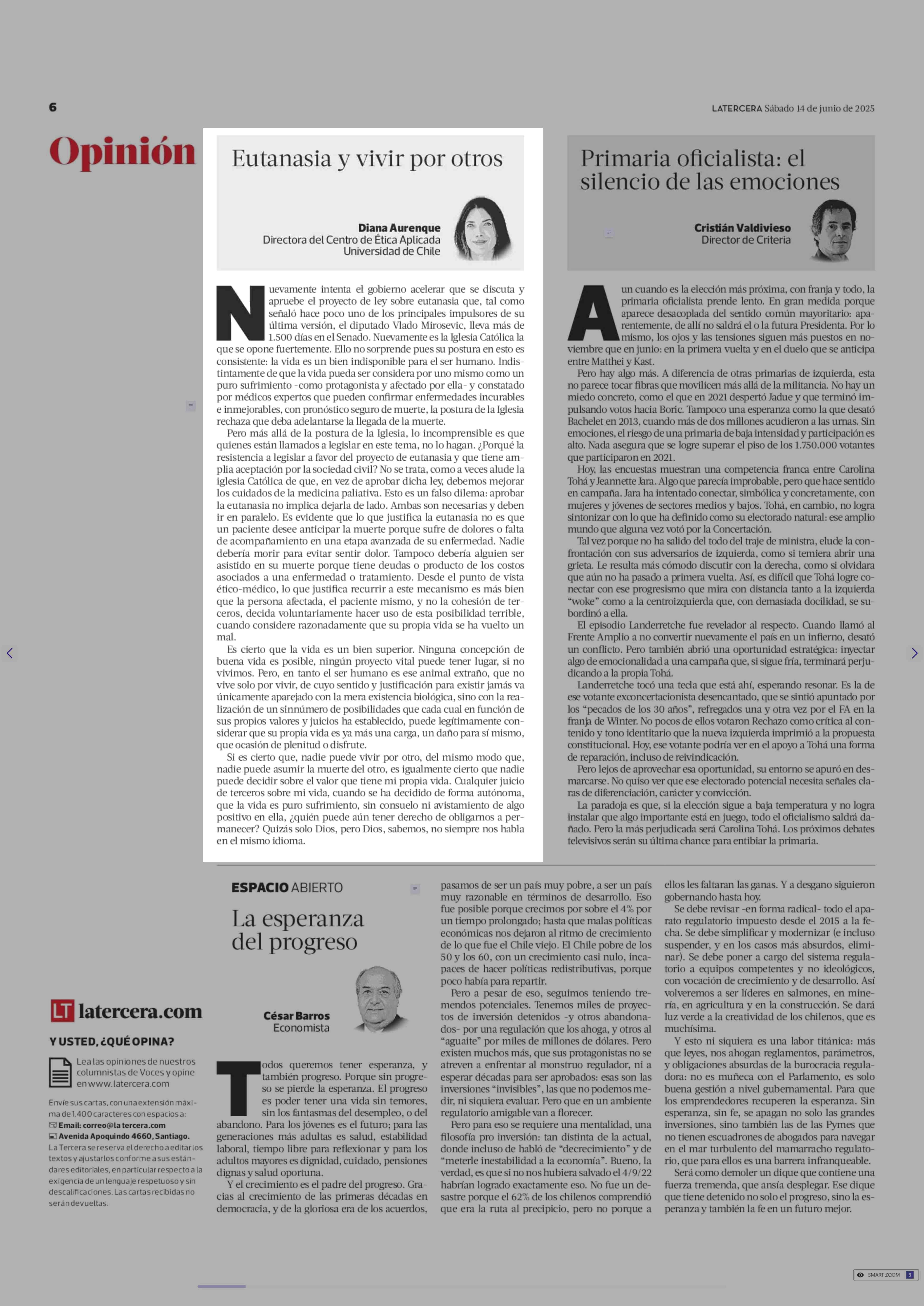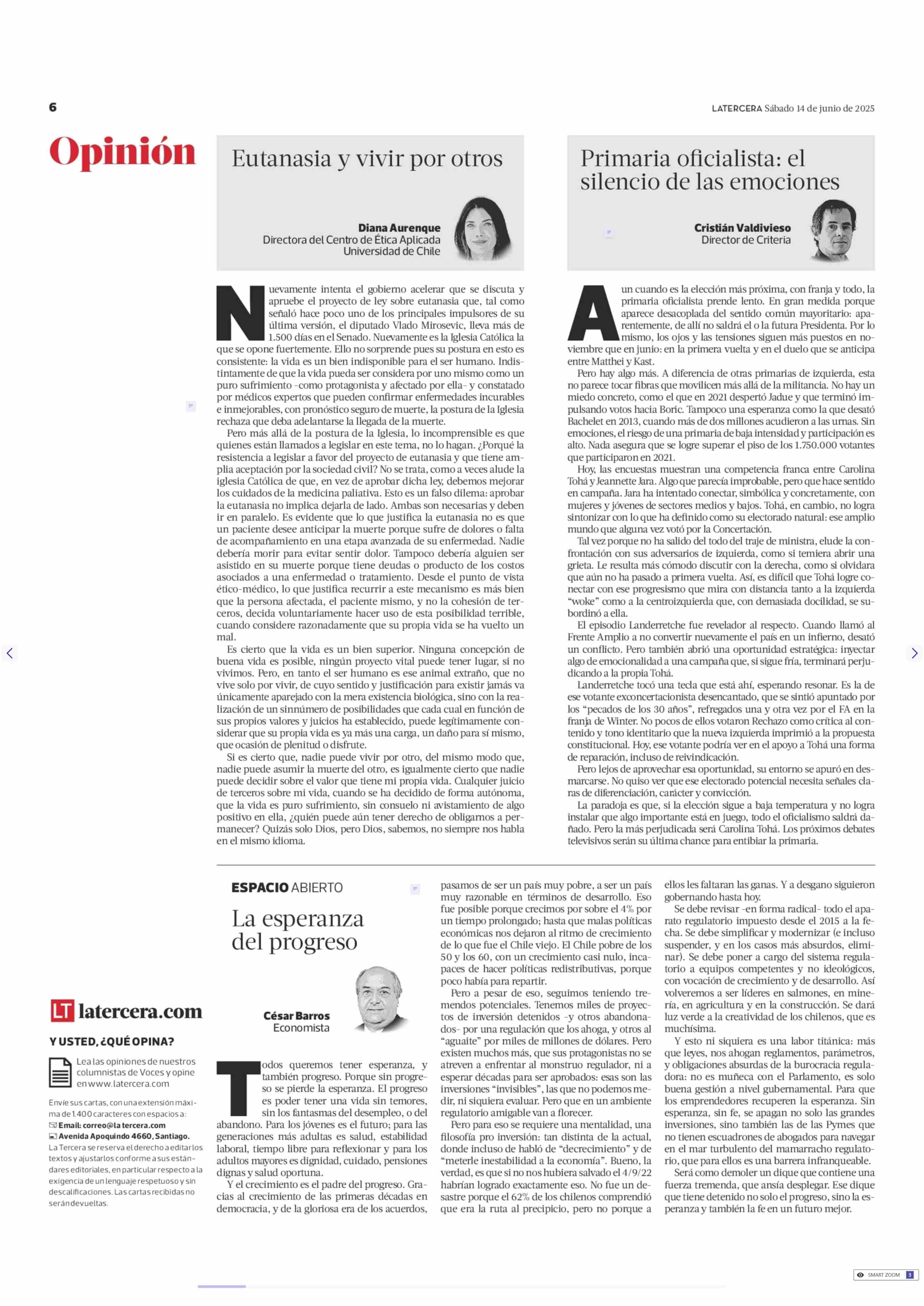 COLUMNAS DE OPINIÓN: Eutanasia y vivir por otros 14-06-2025 La Tercera |