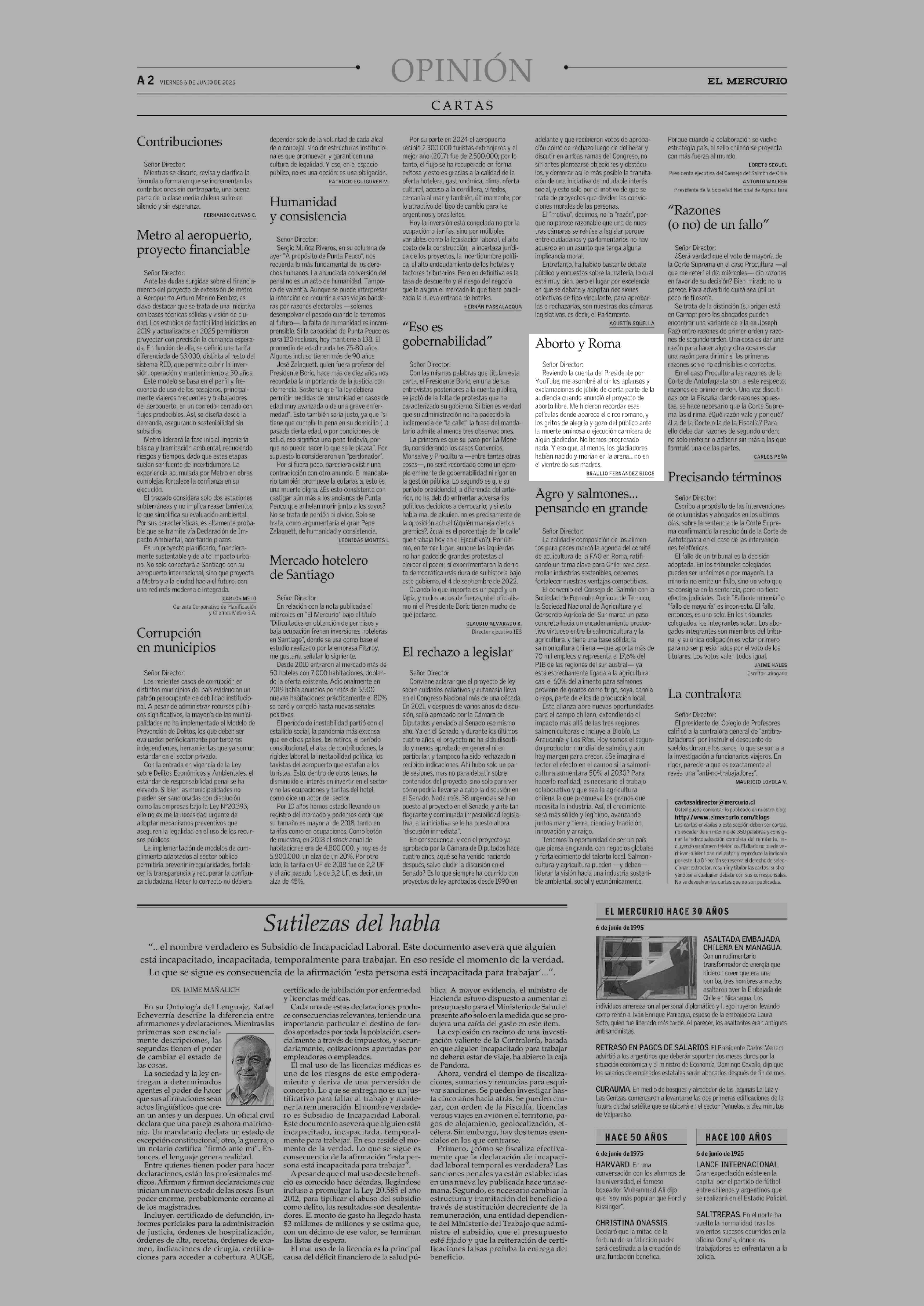 CARTAS: Aborto y Roma 06-06-2025 El Mercurio |