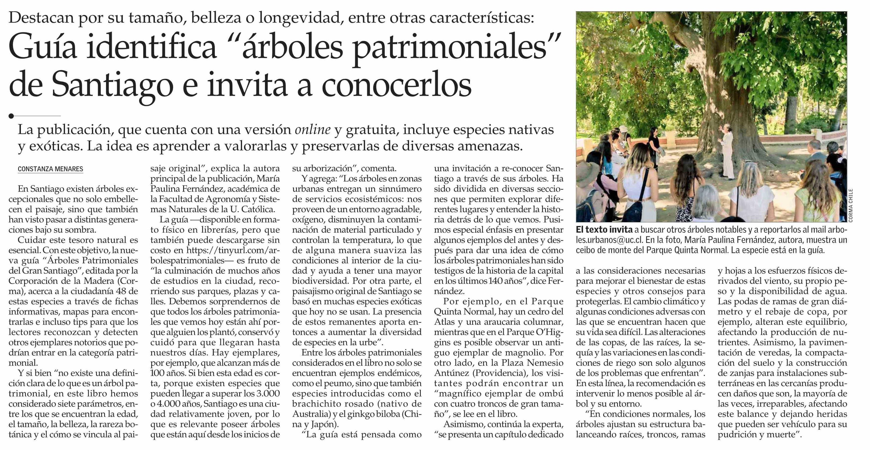 Guía identifica “árboles patrimoniales” de Santiago e invita a conocerlos 01-10-2024 El Mercurio |