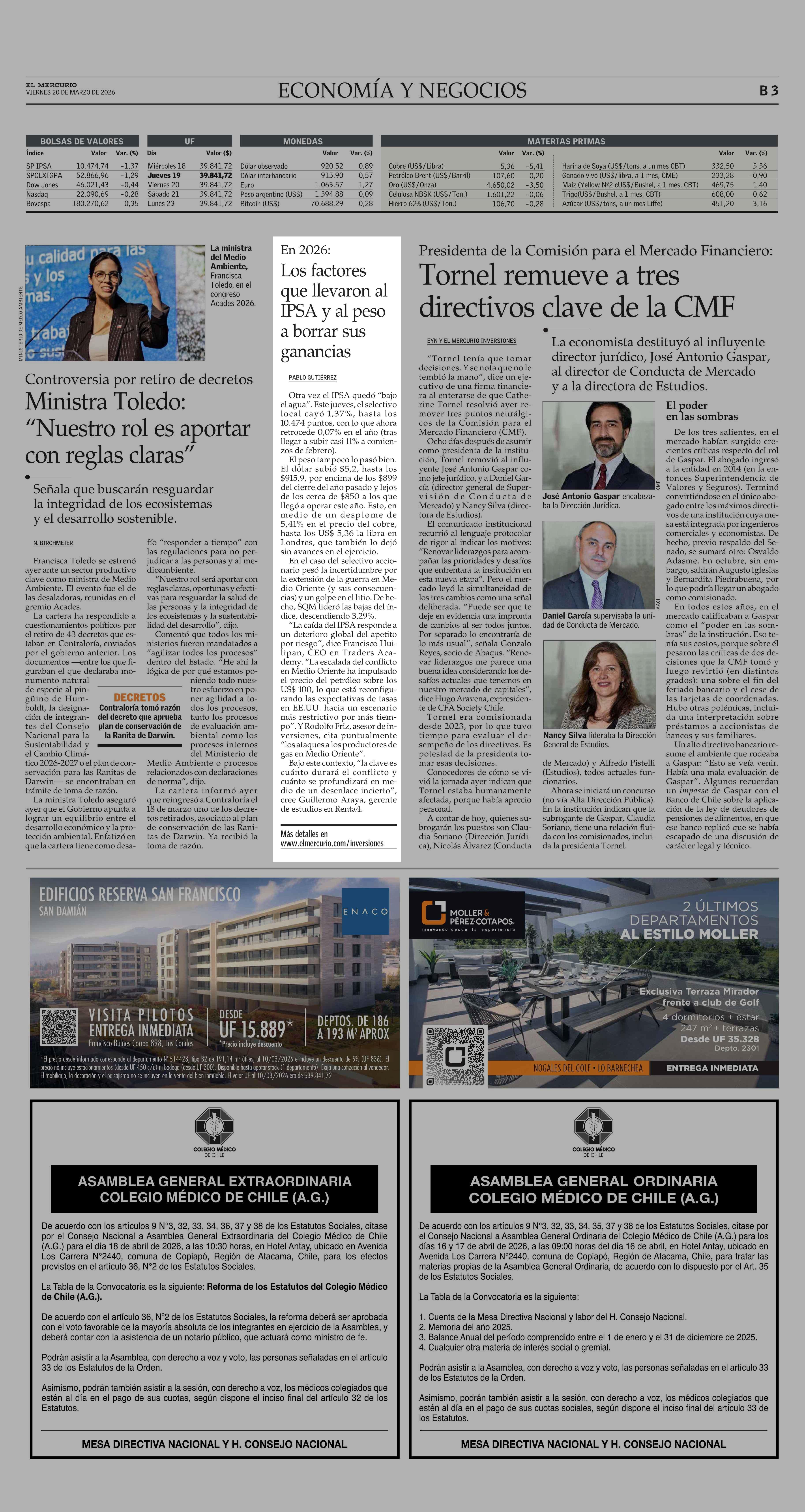 En 2026: Los factores que llevaron al IPSA y al peso a borrar sus ganancias 20-03-2026 El Mercurio |