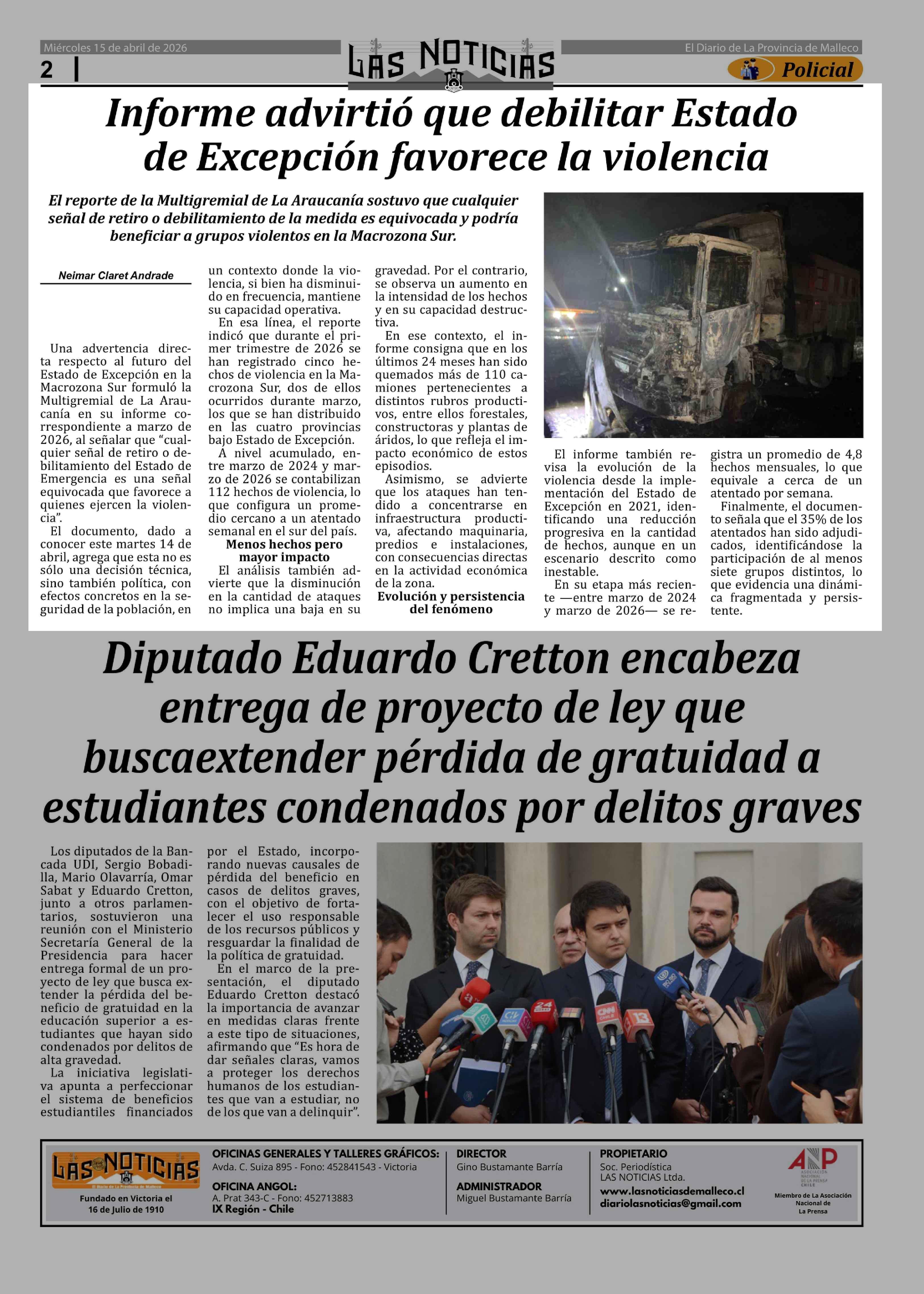 | Fecha: | 15-04-2026 | Sector: | Noticia general | Región: | Región de la Araucanía |