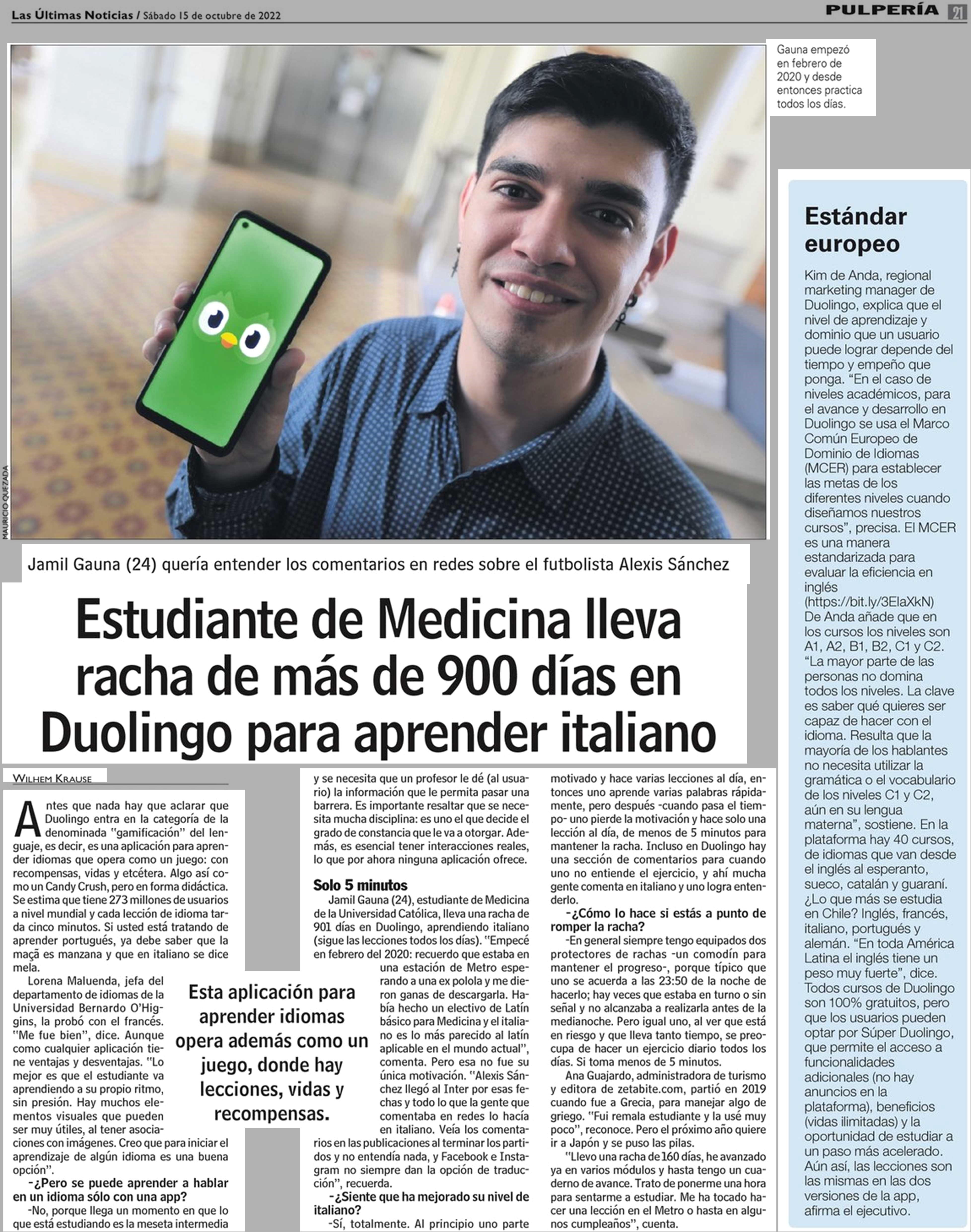 Título: Estudiante de Medicina lleva racha de más de 900 días en Duolingo para aprender italiano