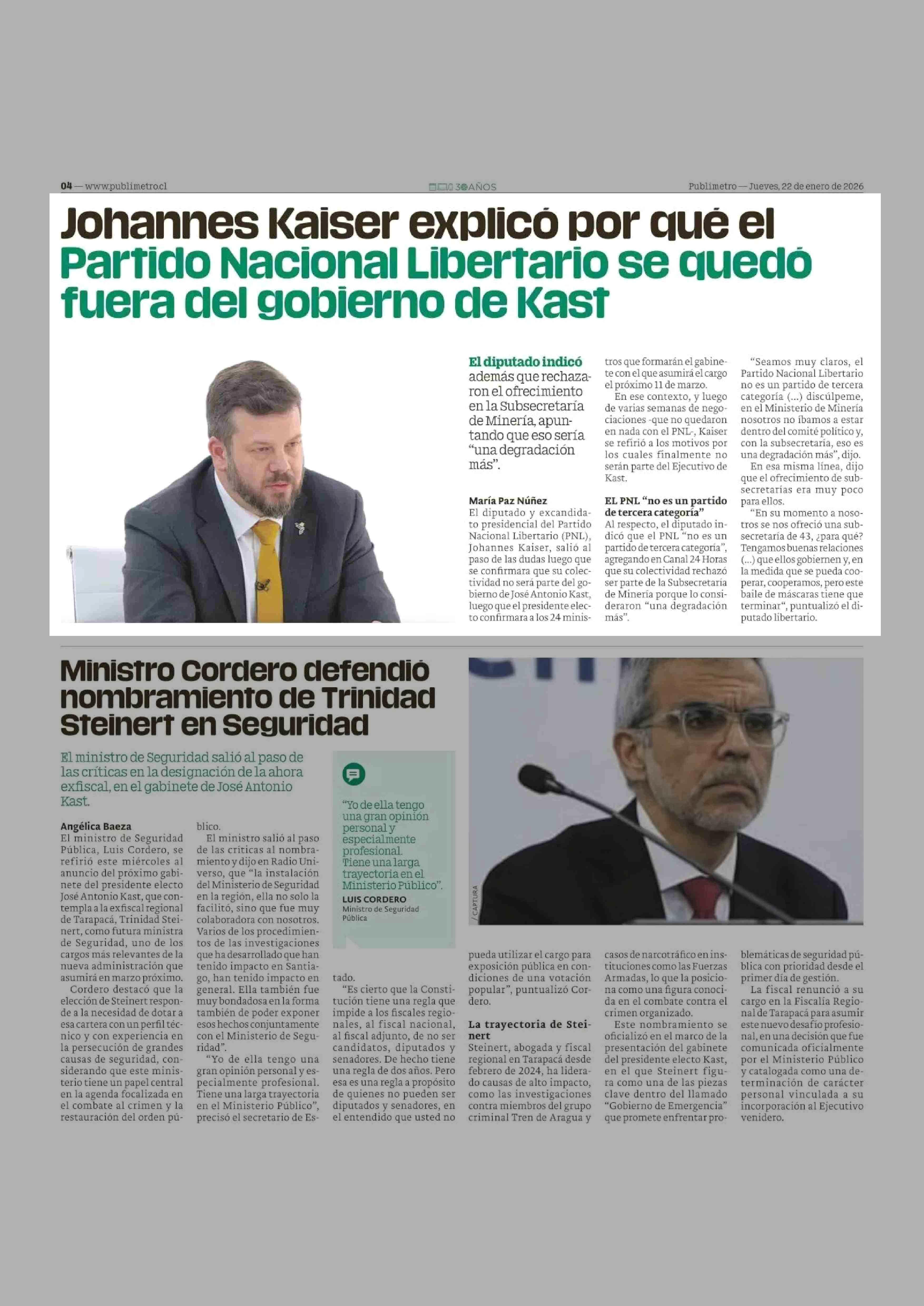 Johannes Kaiser explico por que el Partido Nacional Libertario se quedo fuera del gobierno de Kast 22-01-2026 Publimetro |