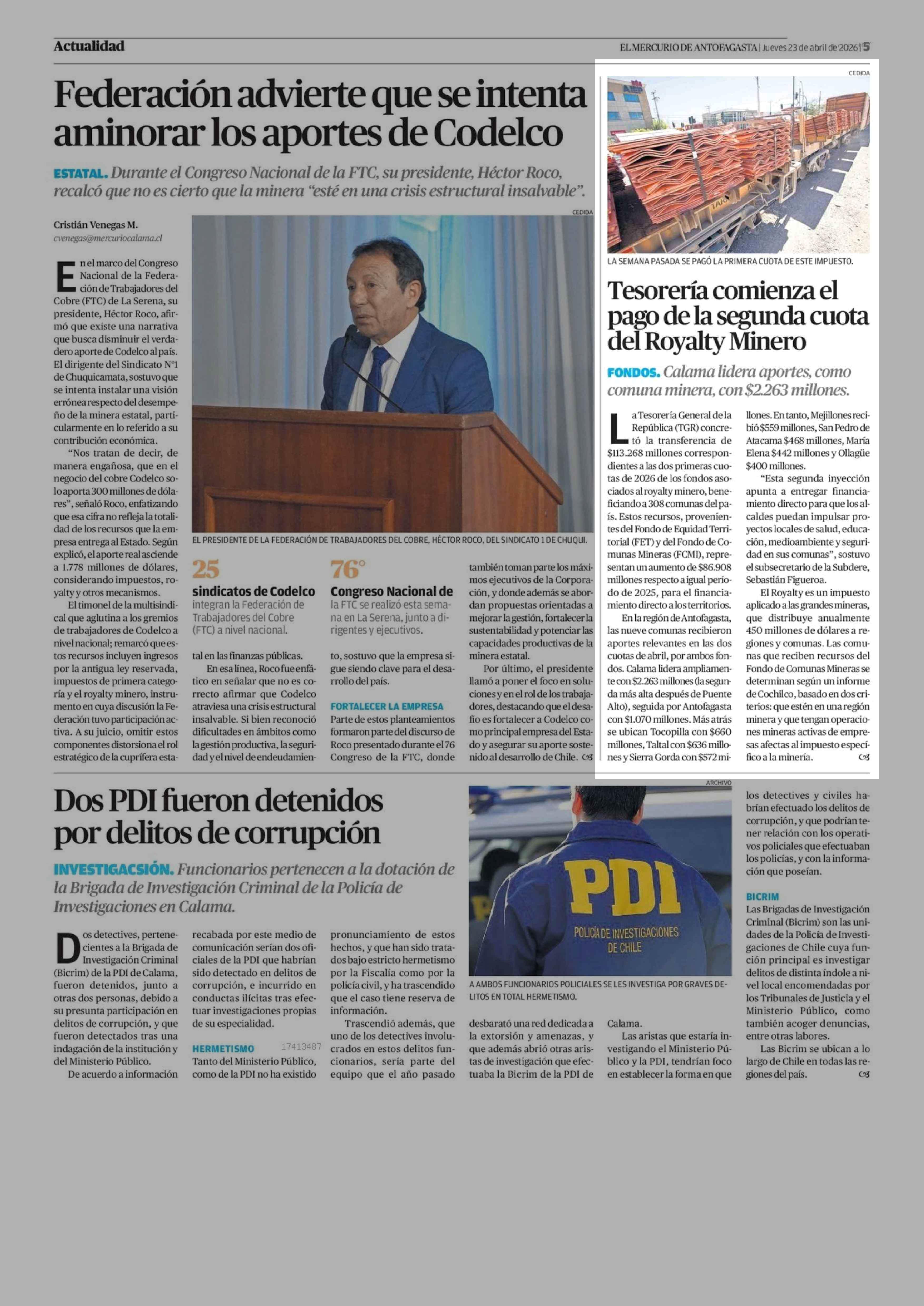 Fecha: 23-04-2026 Sector: Noticia general Región: Región de Antofagasta