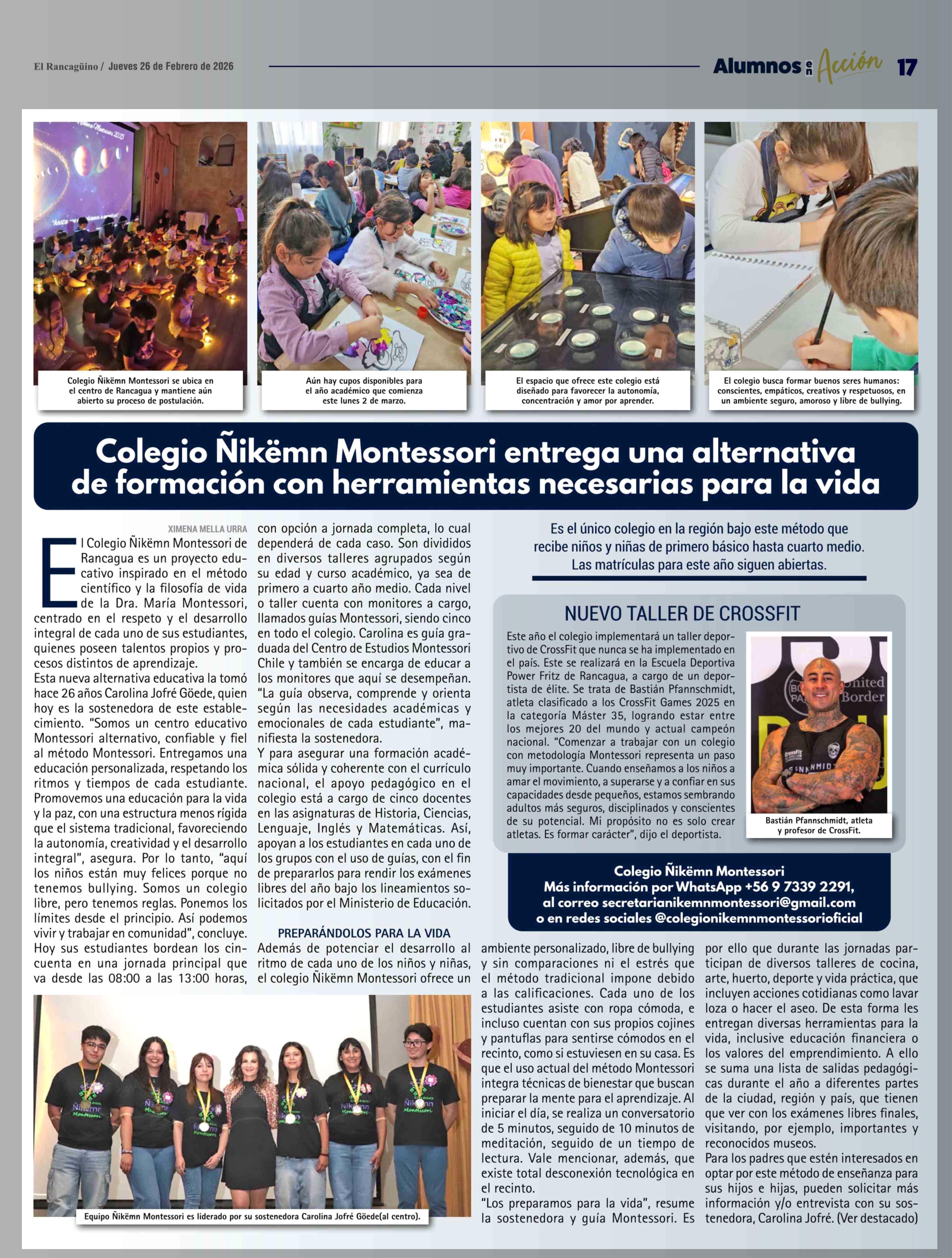 Título: Colegio Nikëmn Montessori entrega una alternativa de formación con herramientas necesarias para la vida