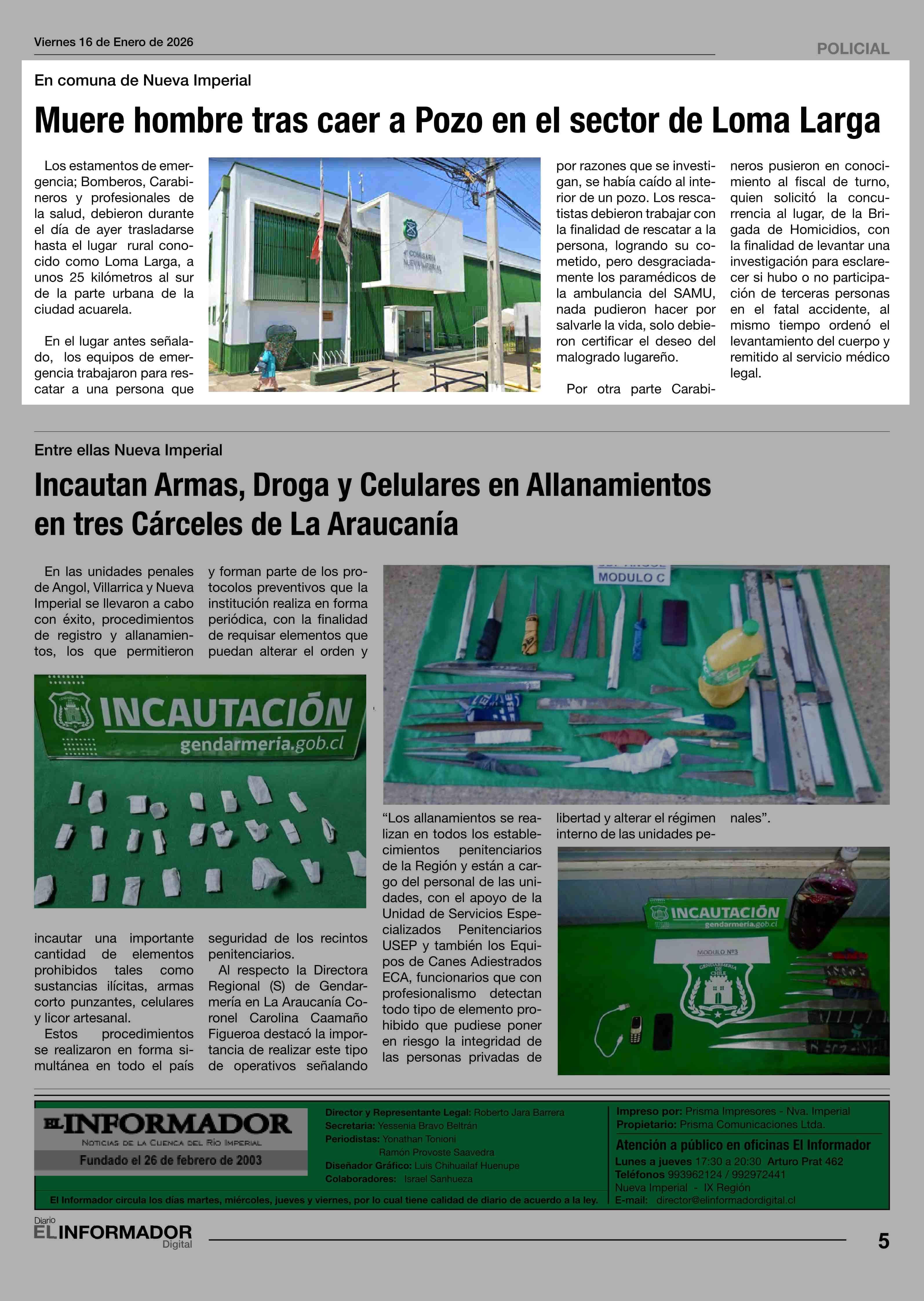 | Fecha: | 16-01-2026 | Sector: | Noticia general | Región: | Región de la Araucanía |