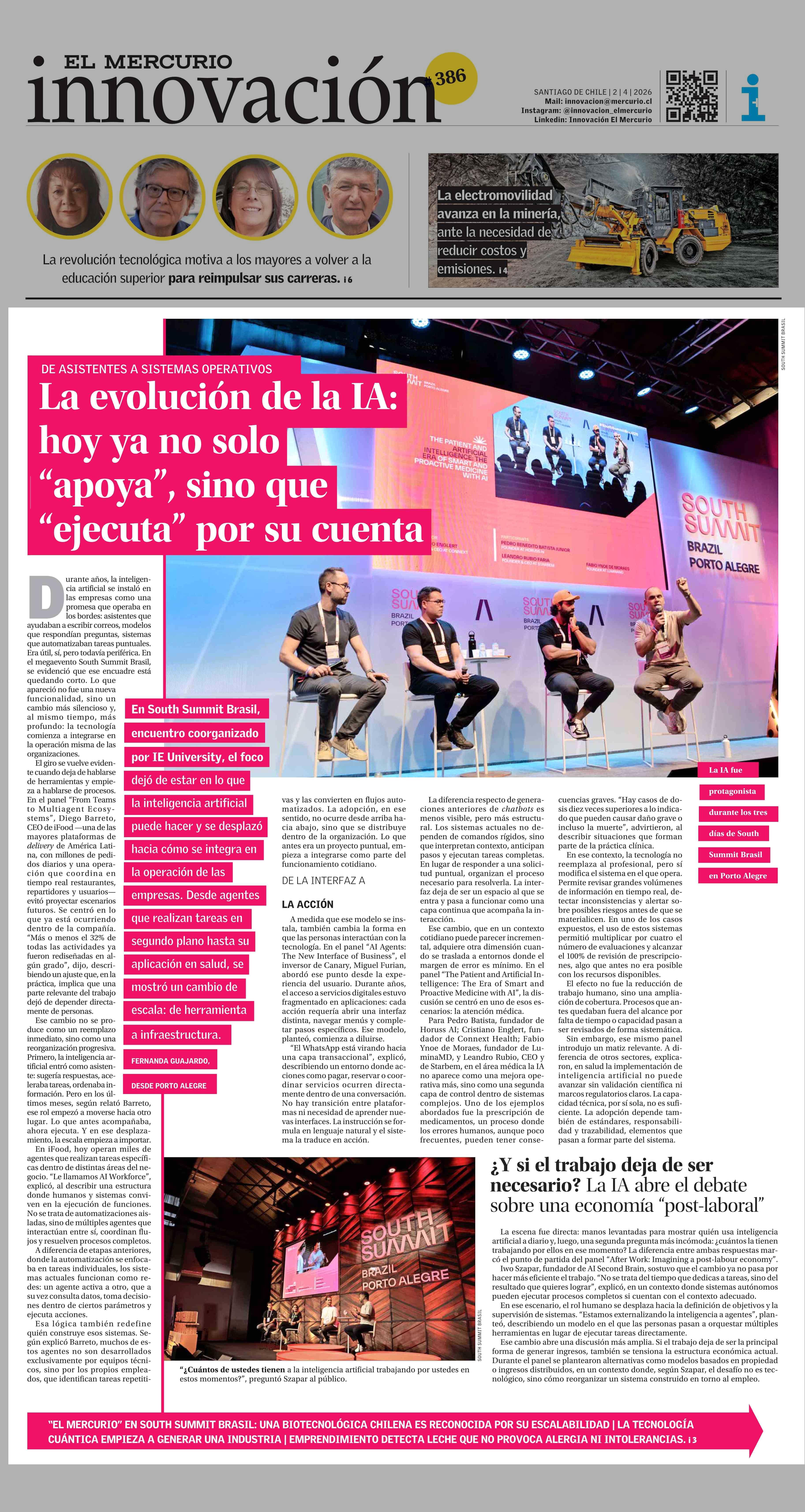 La evolución de la IA: hoy ya no solo "apoya",, sino que ejecuta por su cuenta 02-04-2026 El Mercurio |