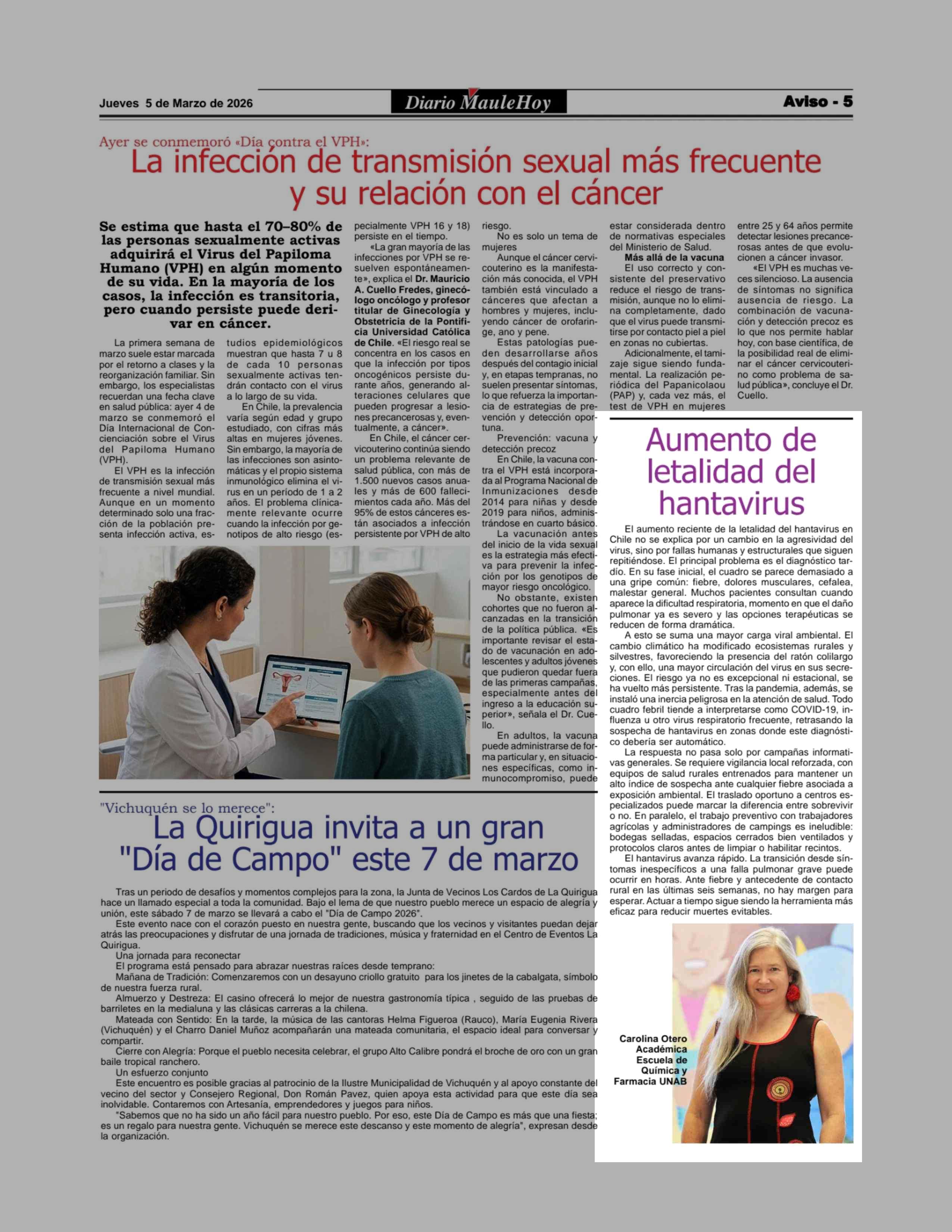 | Fuente: | Maule Hoy (Maule Hoy) | Página(s): | 5 |