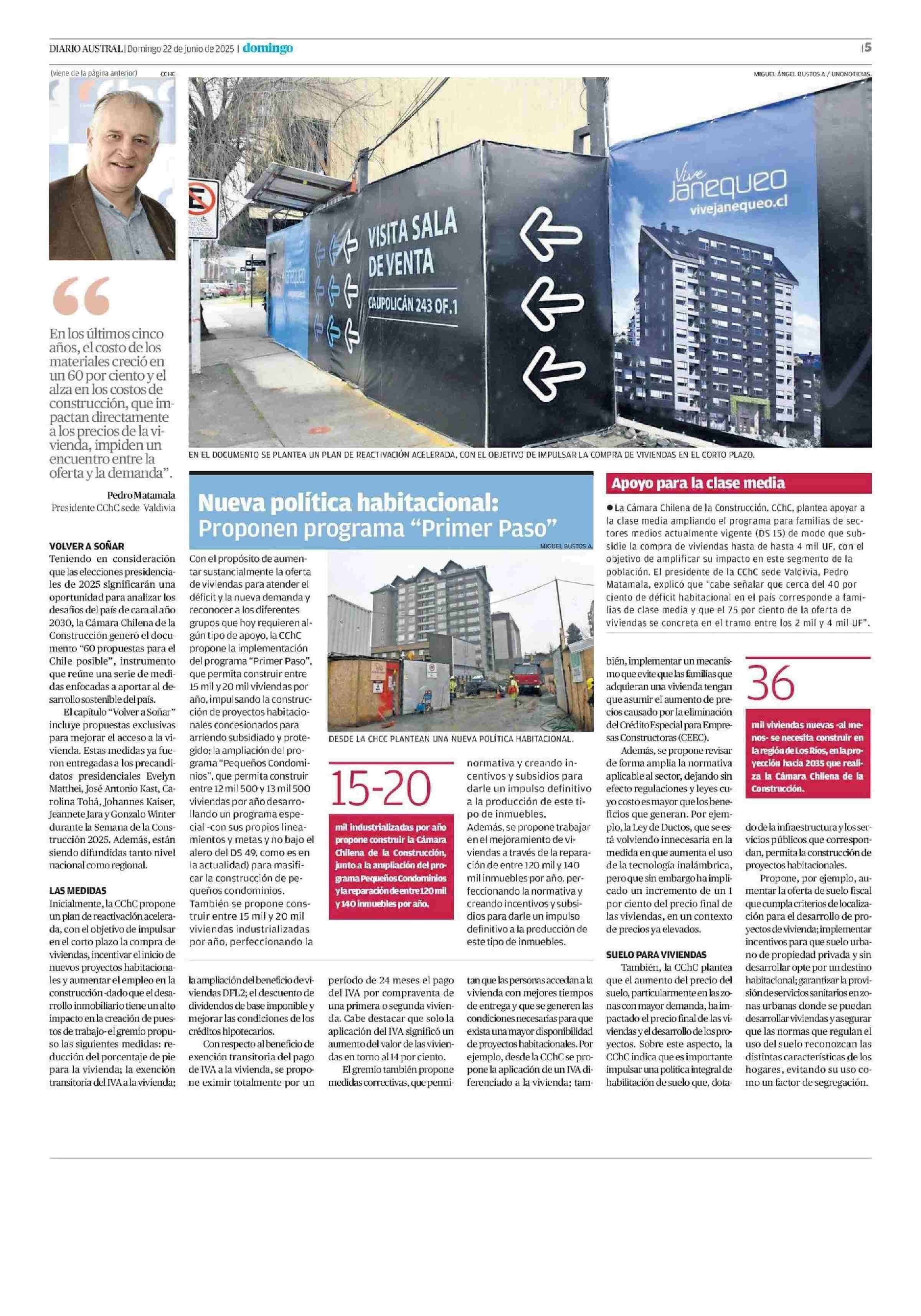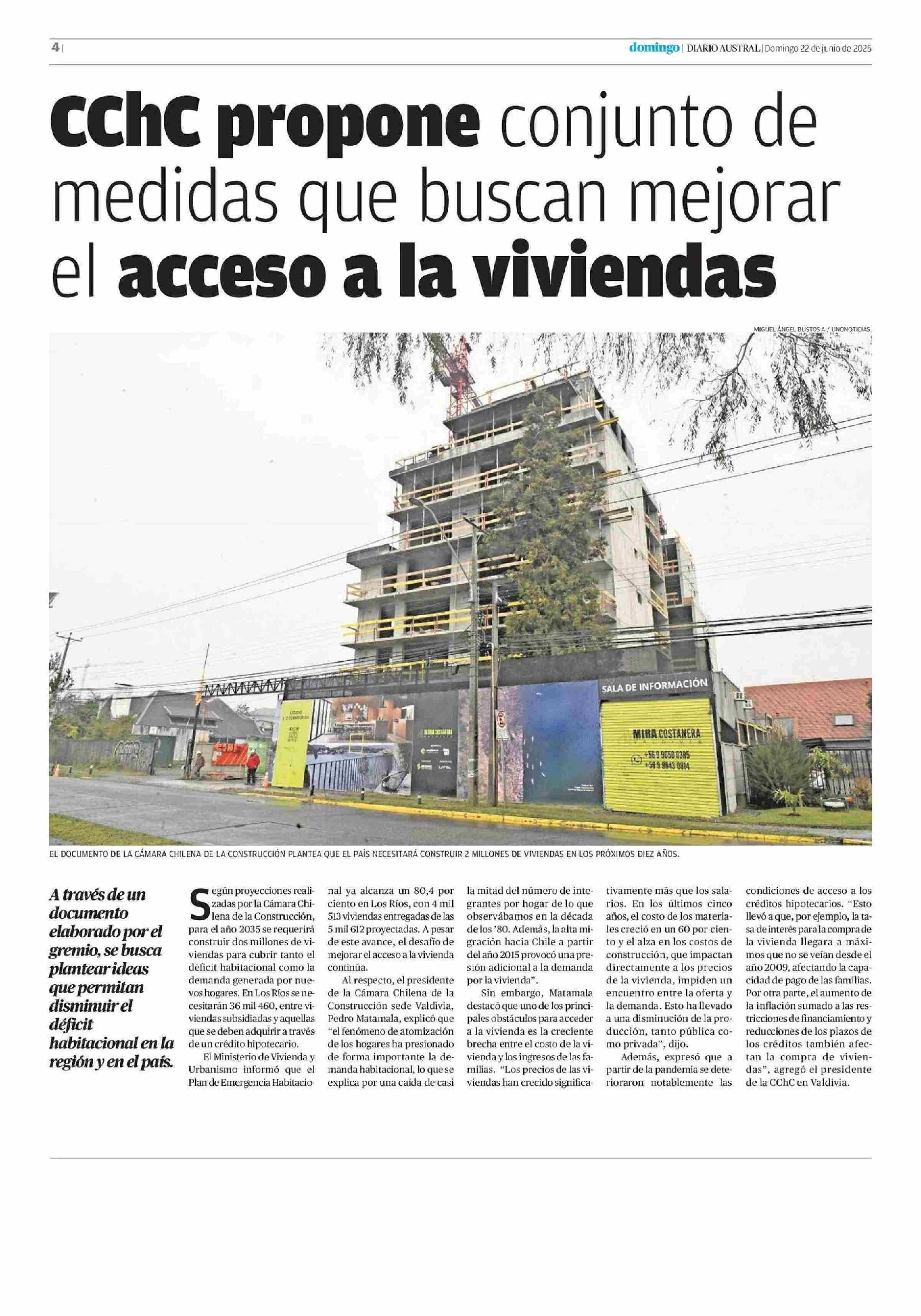 CcchC propone conjunto de medidas que buscan mejorar el acceso a la viviendas 22-06-2025 Diario Austral Región de Los Ríos |