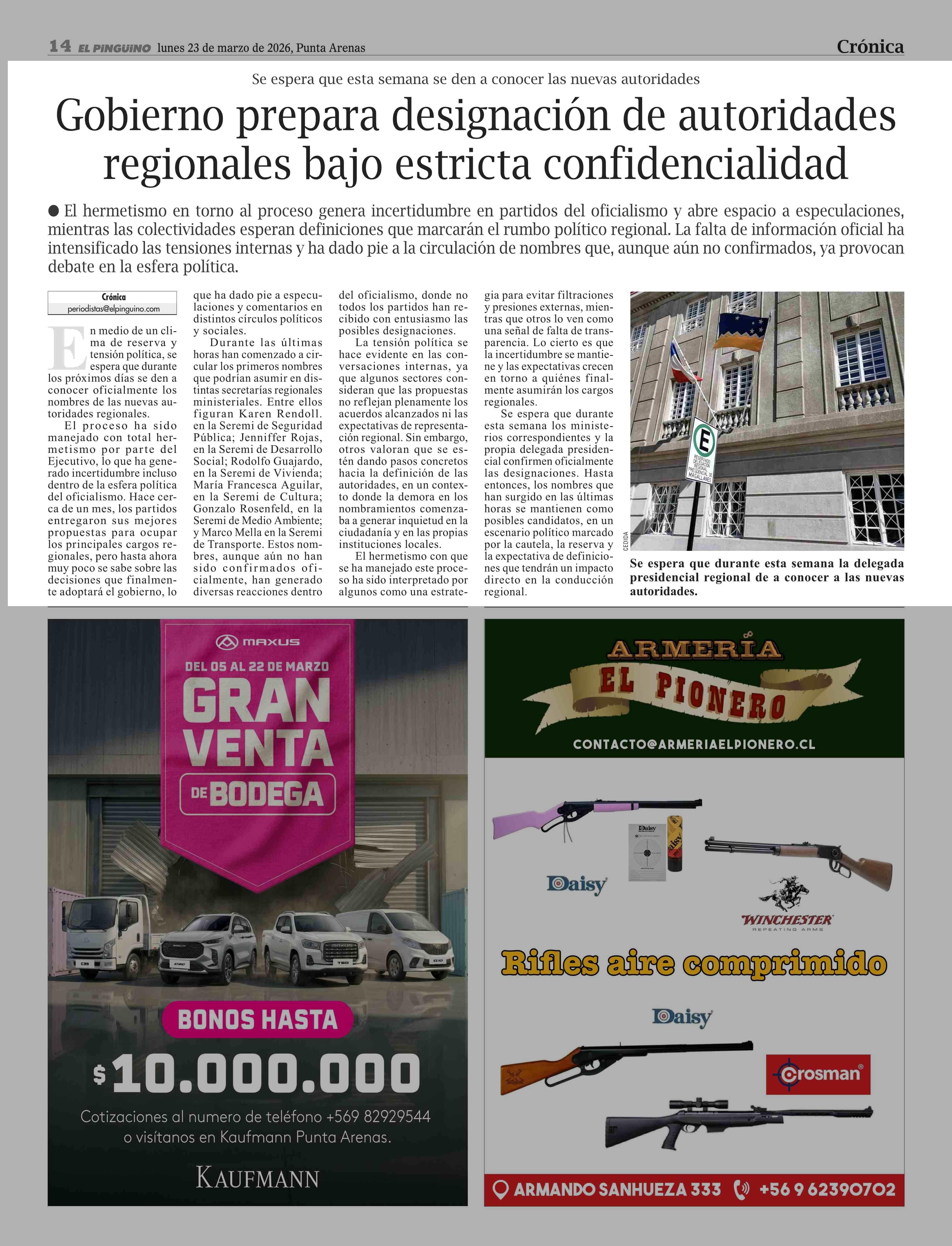 Fecha: 23-03-2026 Sector: Noticia general Región: Región de Magallanes y de la Antártica Chilena