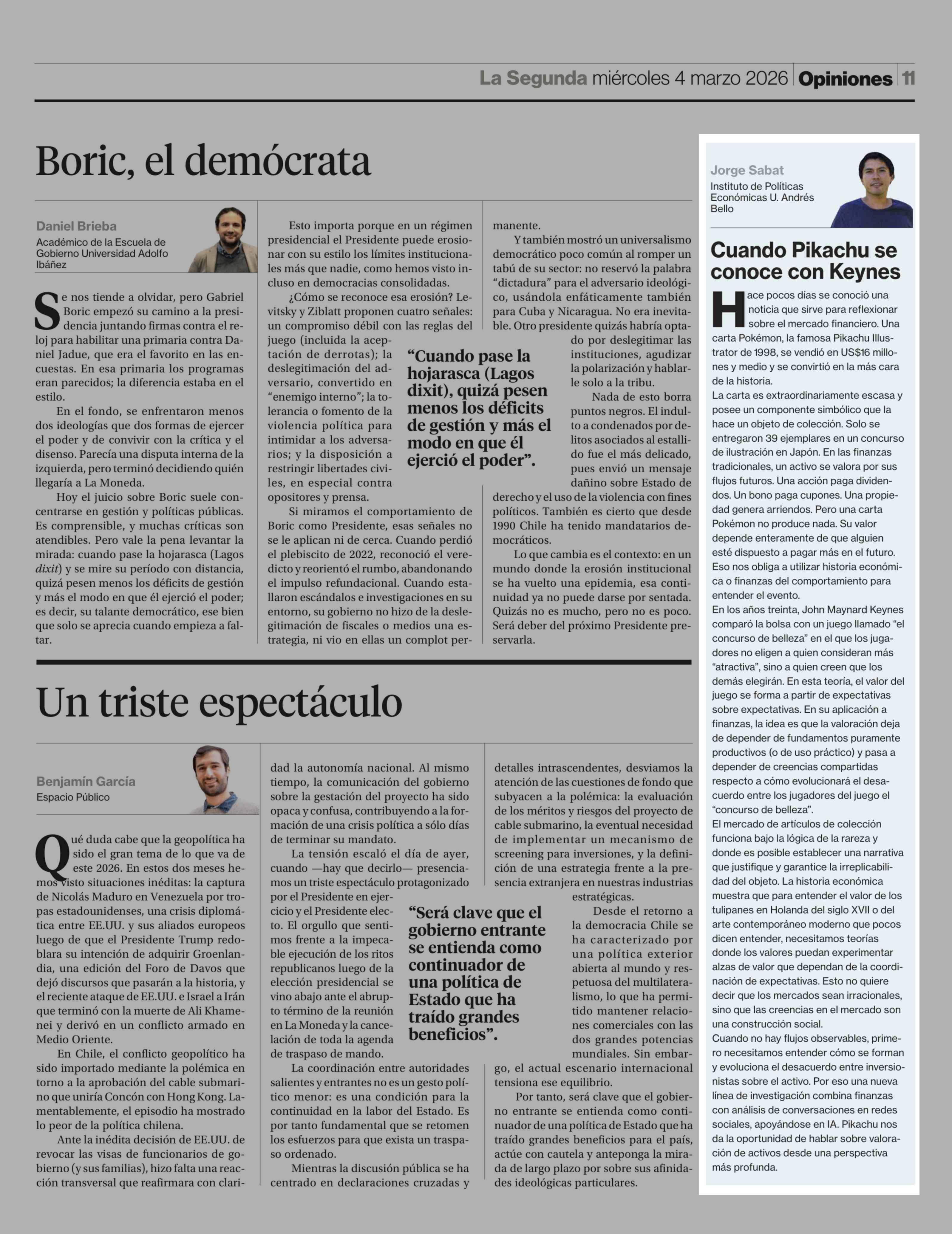 Columnas de Opinión: Cuando Pikachu se conoce con Keynes 04-03-2026 La Segunda |