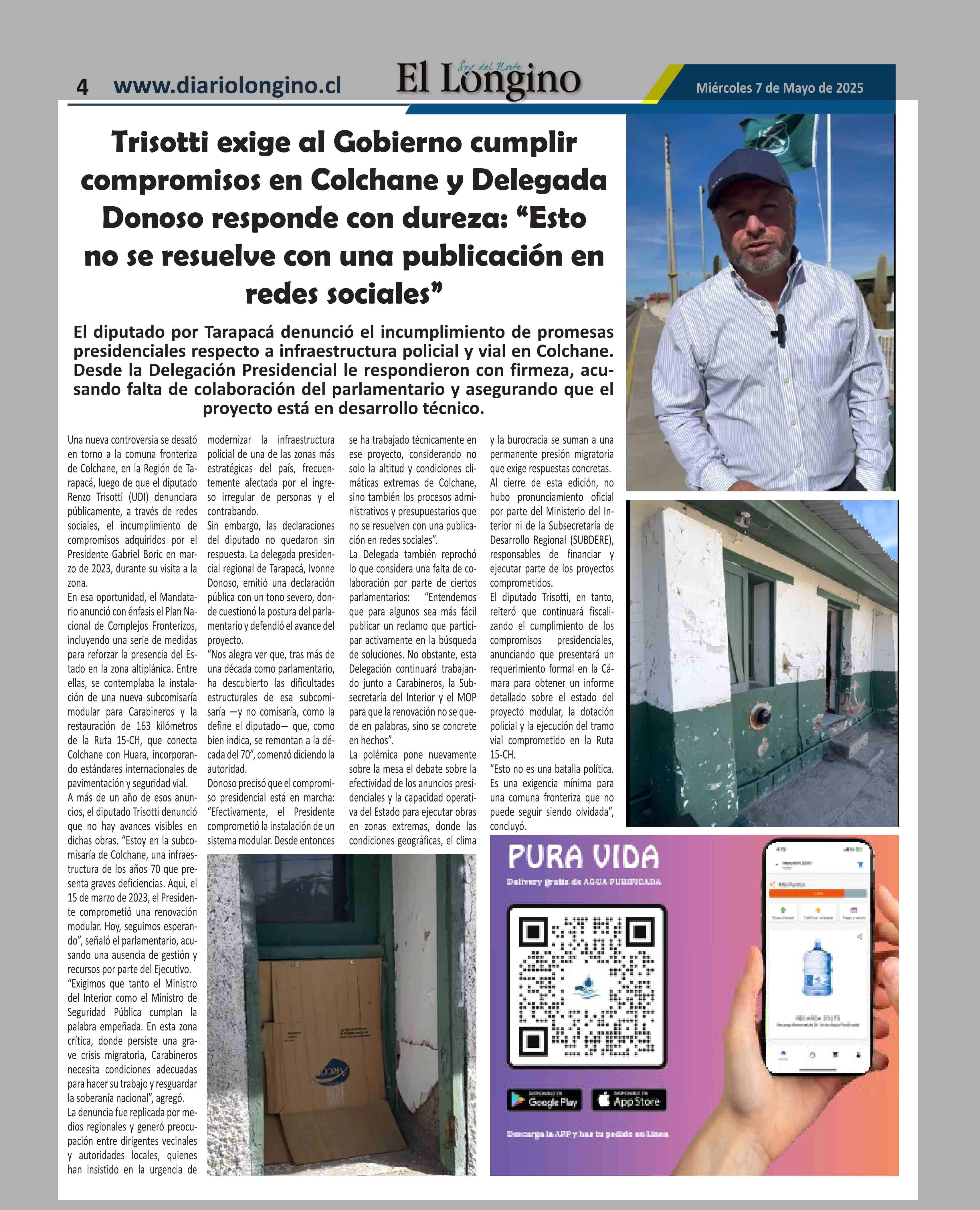 | Título: | Una nueva controversia se desató en torno a la comuna fronteriza de Colchane, en la Región de Tarapacá, luego de que el diputado Renzo Trisotti (UDI) denunciara públicamente, a través de redes sociales, el incumplimiento de compromisos adquiridos por el Presidente Gabriel Boric en marzo de 2023, dur |