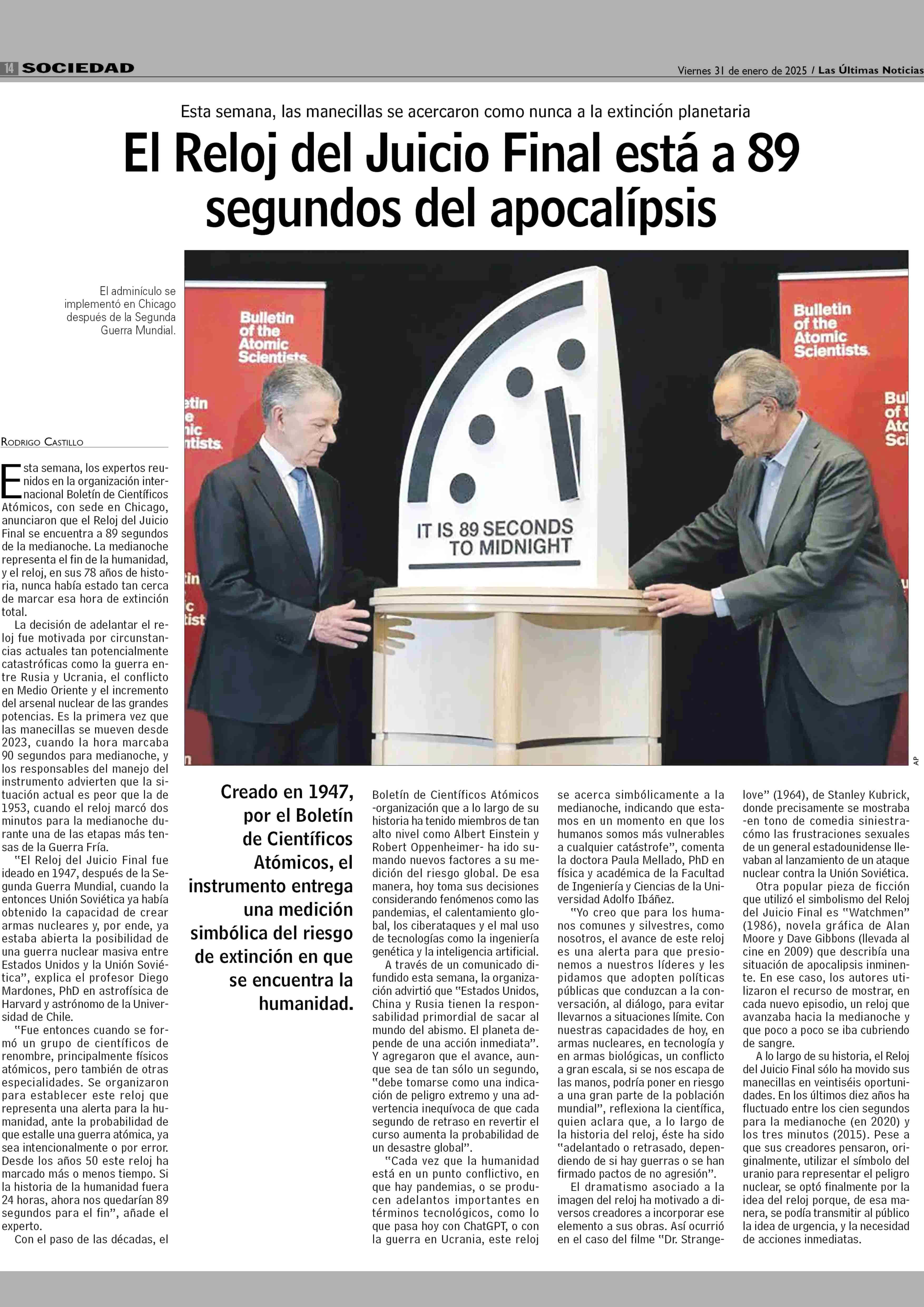 Título: El Reloj del Juicio Final está a 89 segundos del apocalipsis