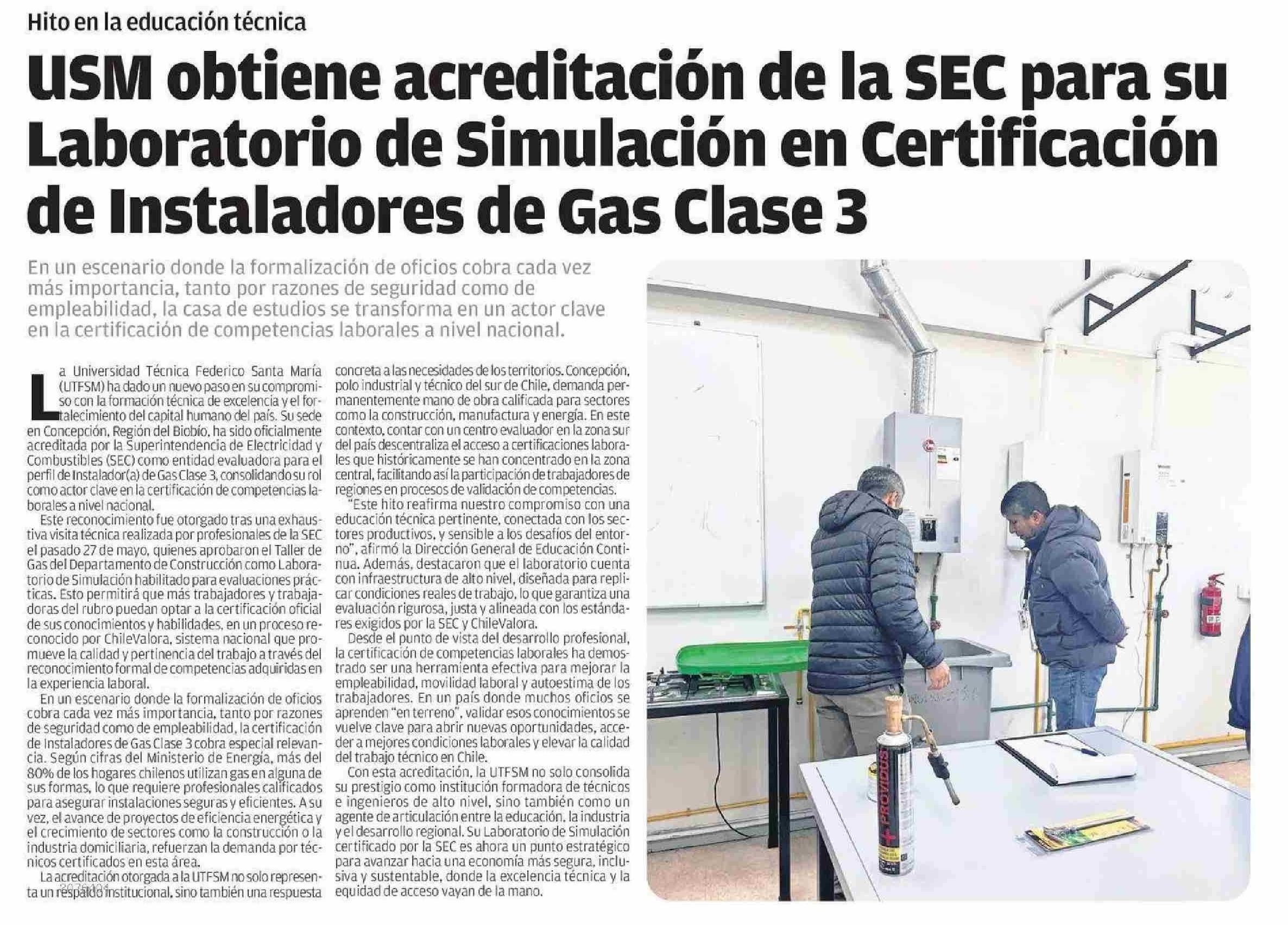 USM obtiene acreditación de la SEC para su Laboratorio de Simulación en Certificación de Instaladores de Gas Clase 3 05-06-2025 El Sur |
