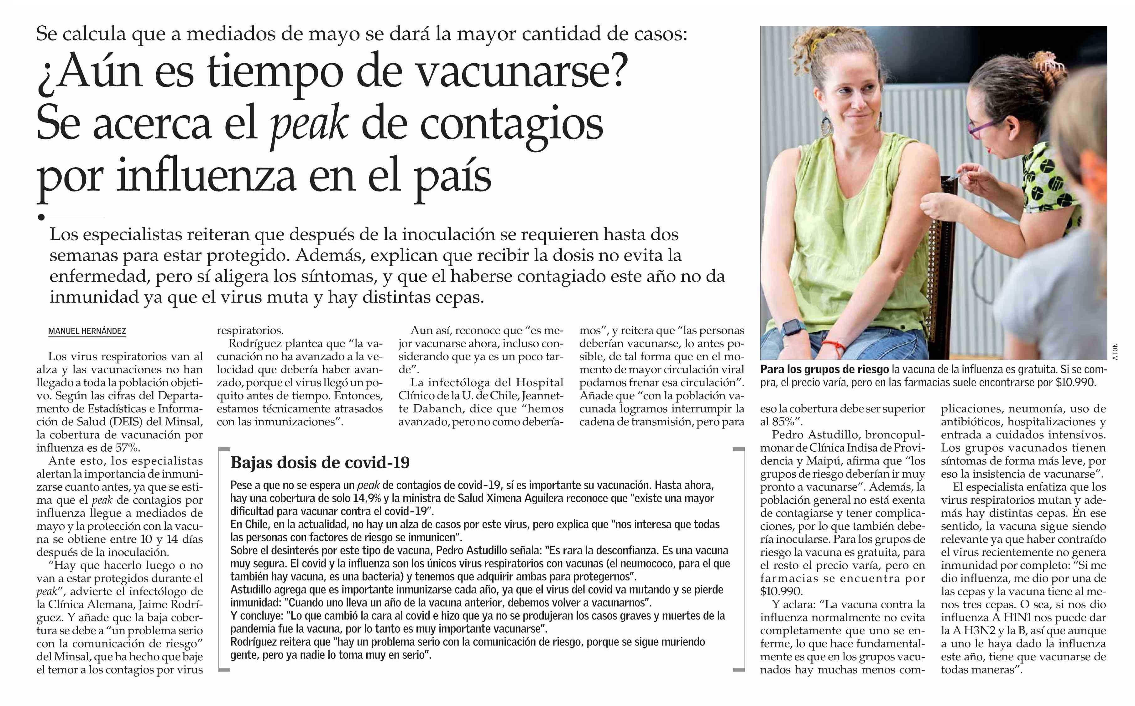 ¿Aún es tiempo de vacunarse? Se acerca el peak de contagios por influenza en el país 26-04-2025 El Mercurio |