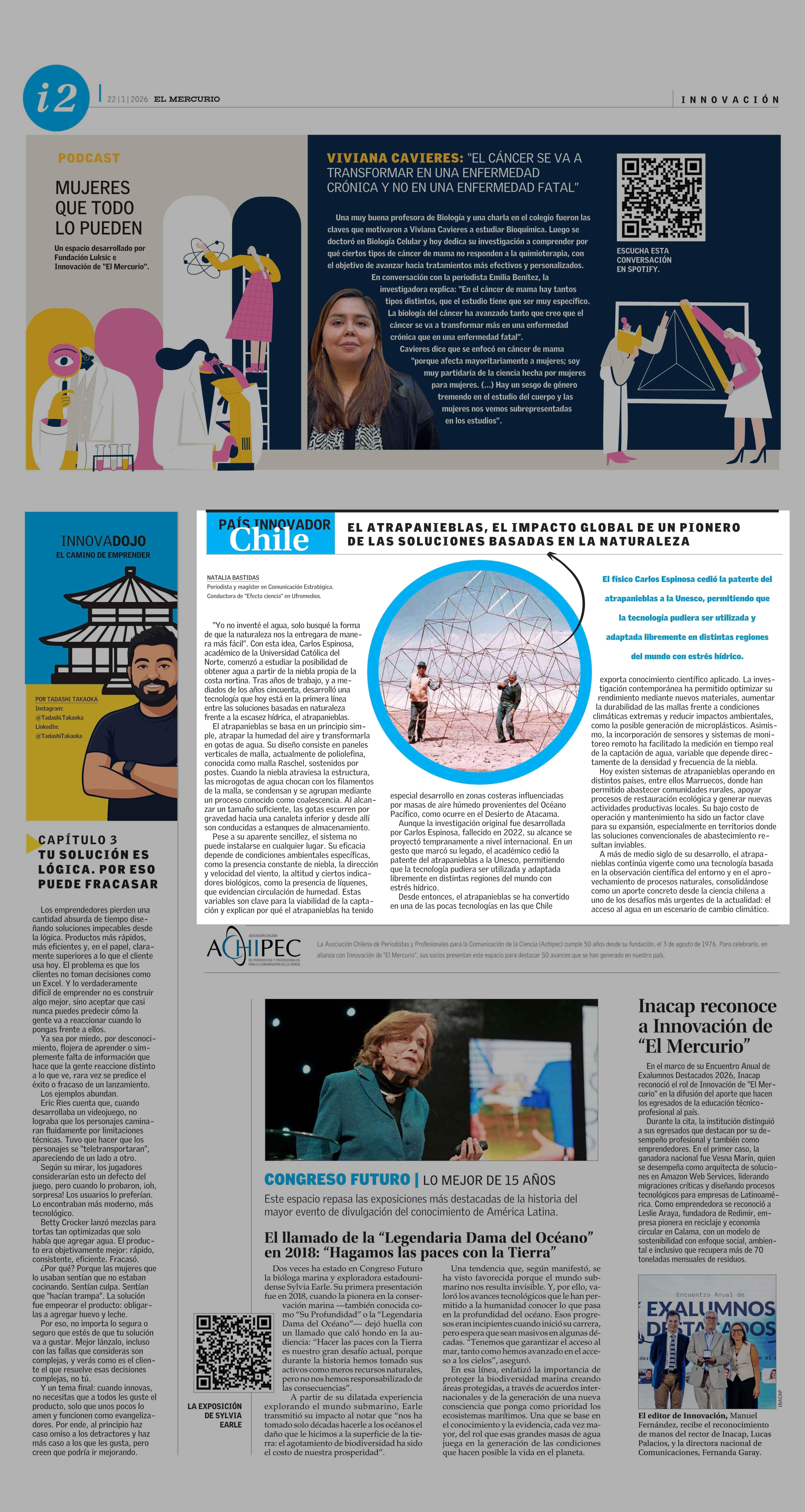 ELATRAPANIEBLAS , ELIMPACTOGLOBALDEUNPIONERODELASSOLUCIONESBASADASENLANATURALEZA 22-01-2026 El Mercurio |