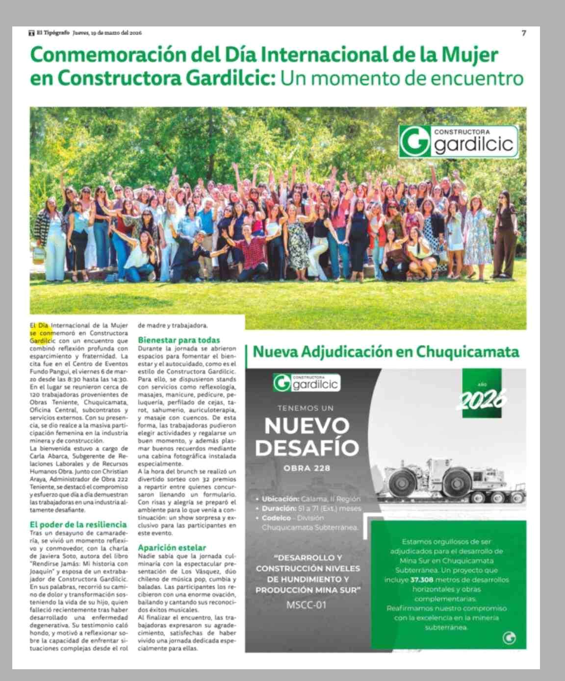 Conmemoración del Día Internacional de la Mujer en Constructora Gardilcic: Un momento de encuentro 19-03-2026 El Tipógrafo |