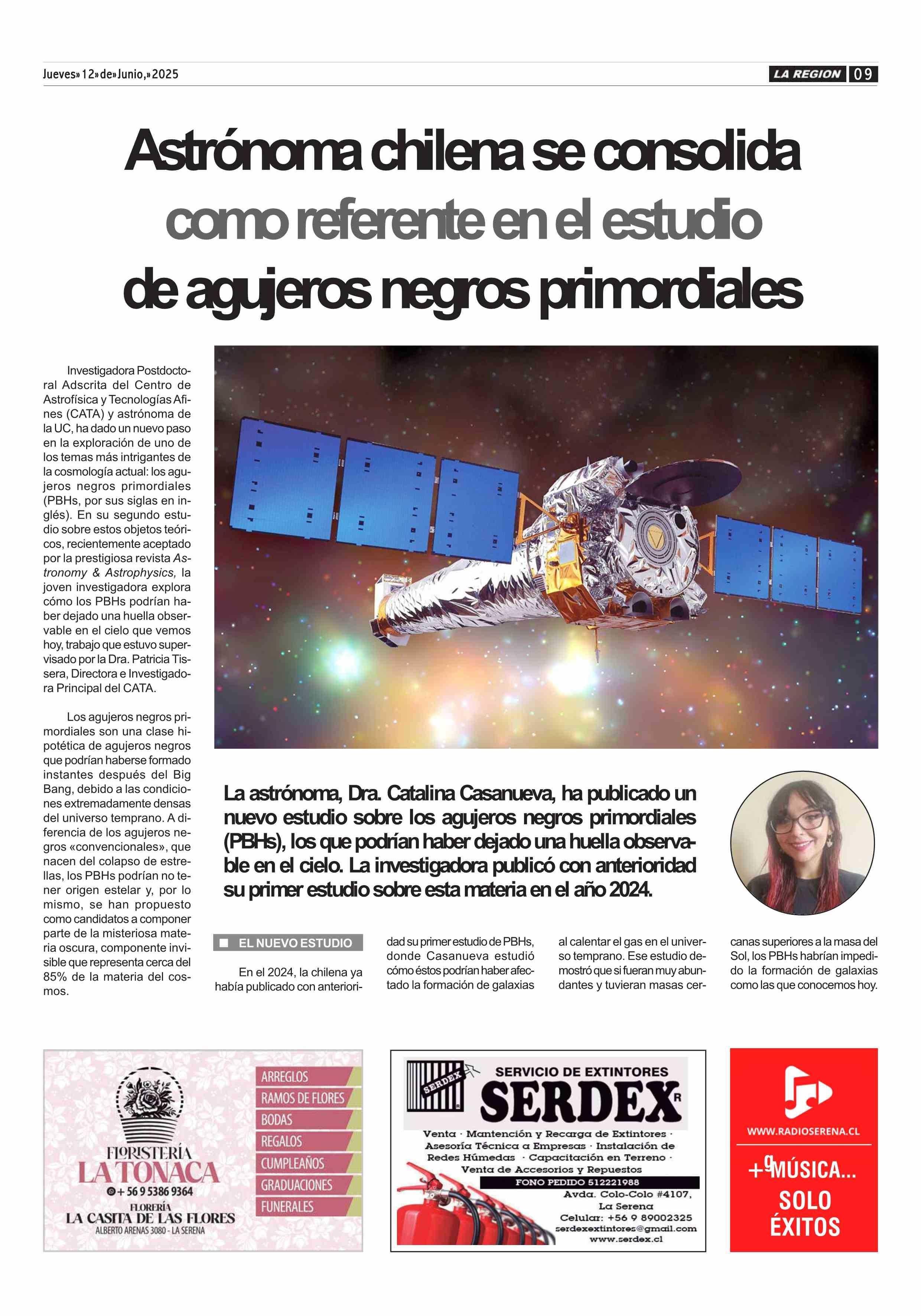 Astrónoma chilena se consolida como referente en el estudio de agujeros negros primordiales 12-06-2025 Diario la Región |