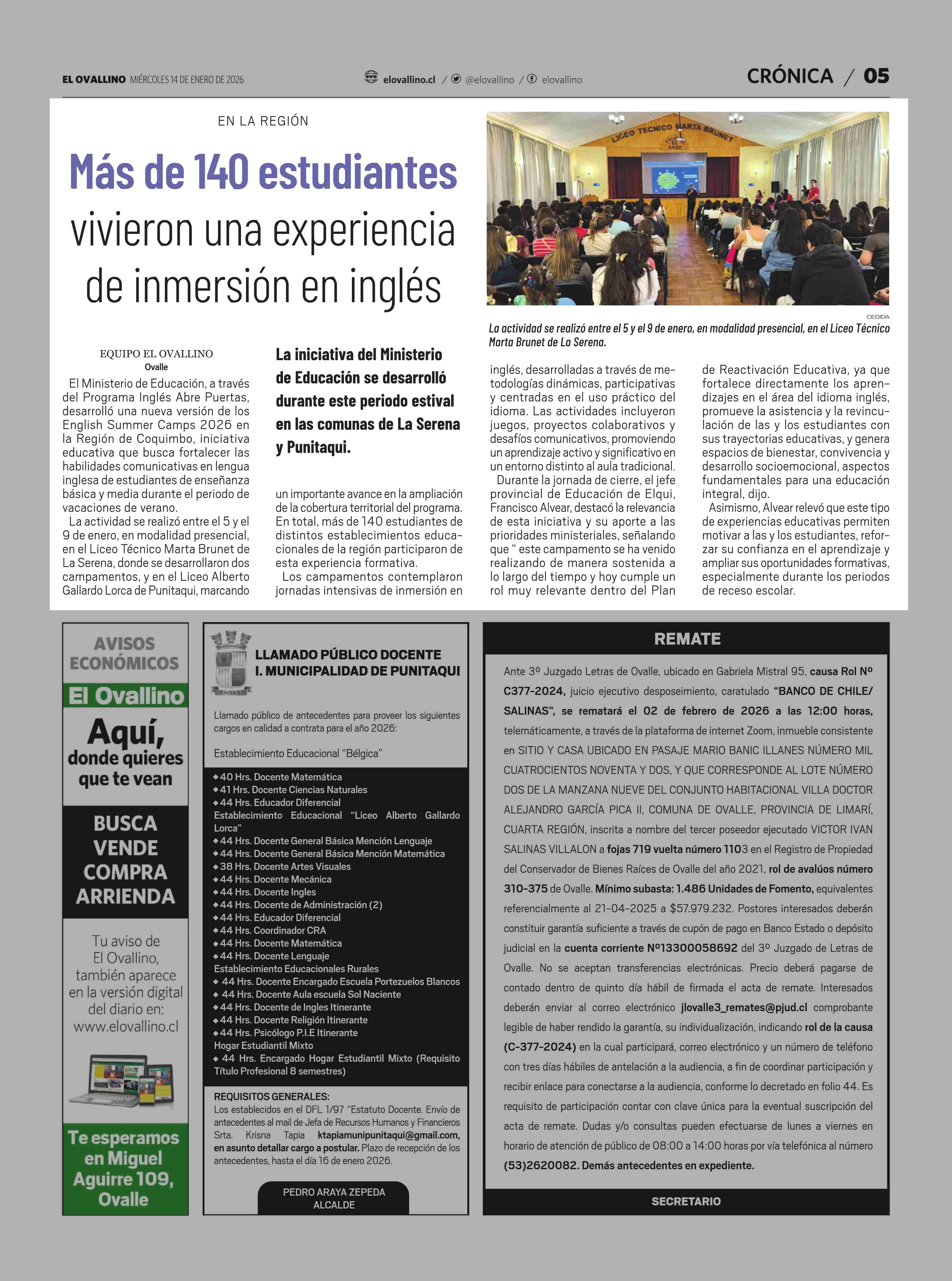 Más de 140 estudiantes vivieron una experiencia de inmersión en inglés 14-01-2026 El Ovallino |