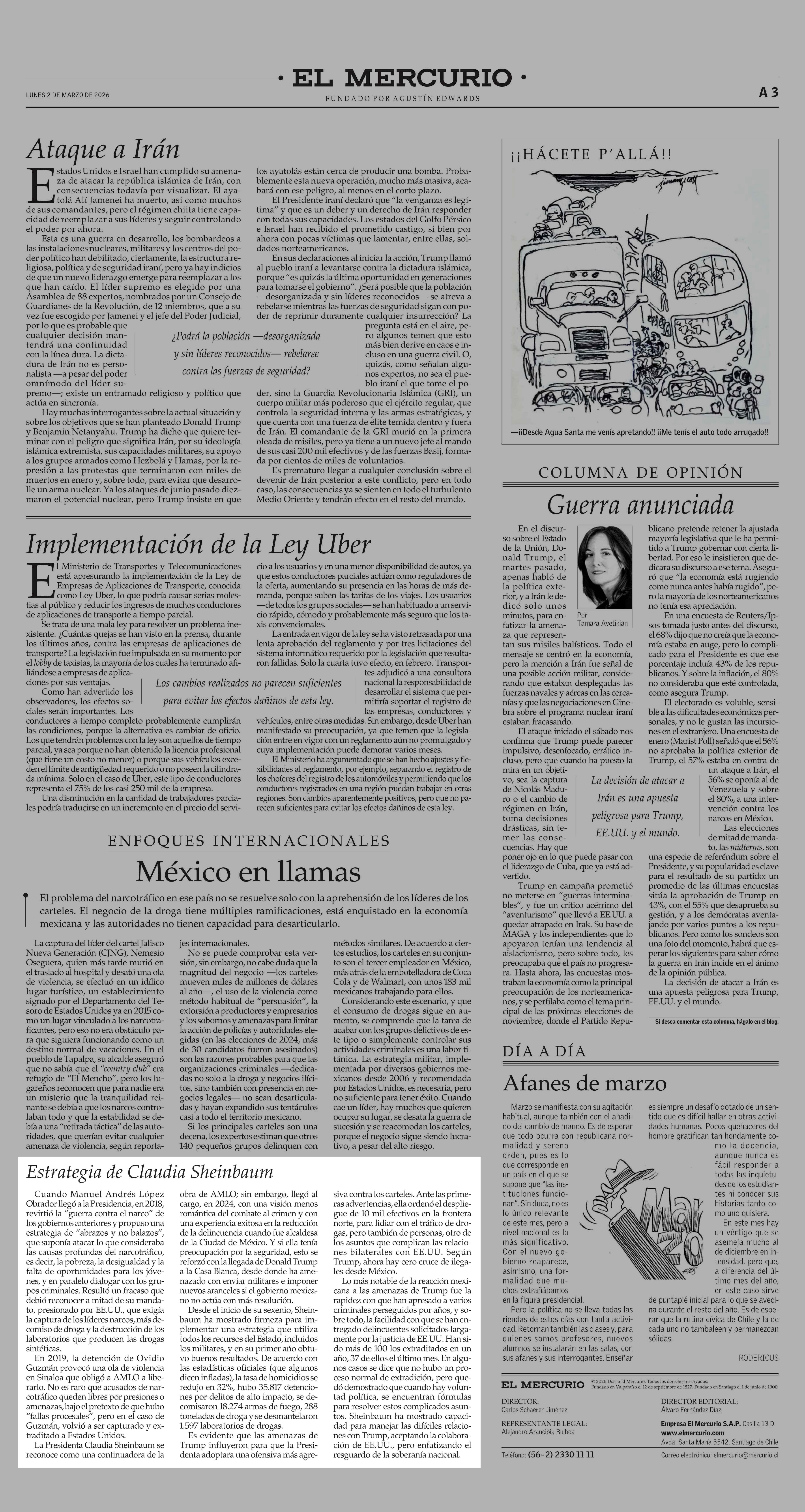 Editorial: Estrategia de Claudia Sheinbaum 02-03-2026 El Mercurio |