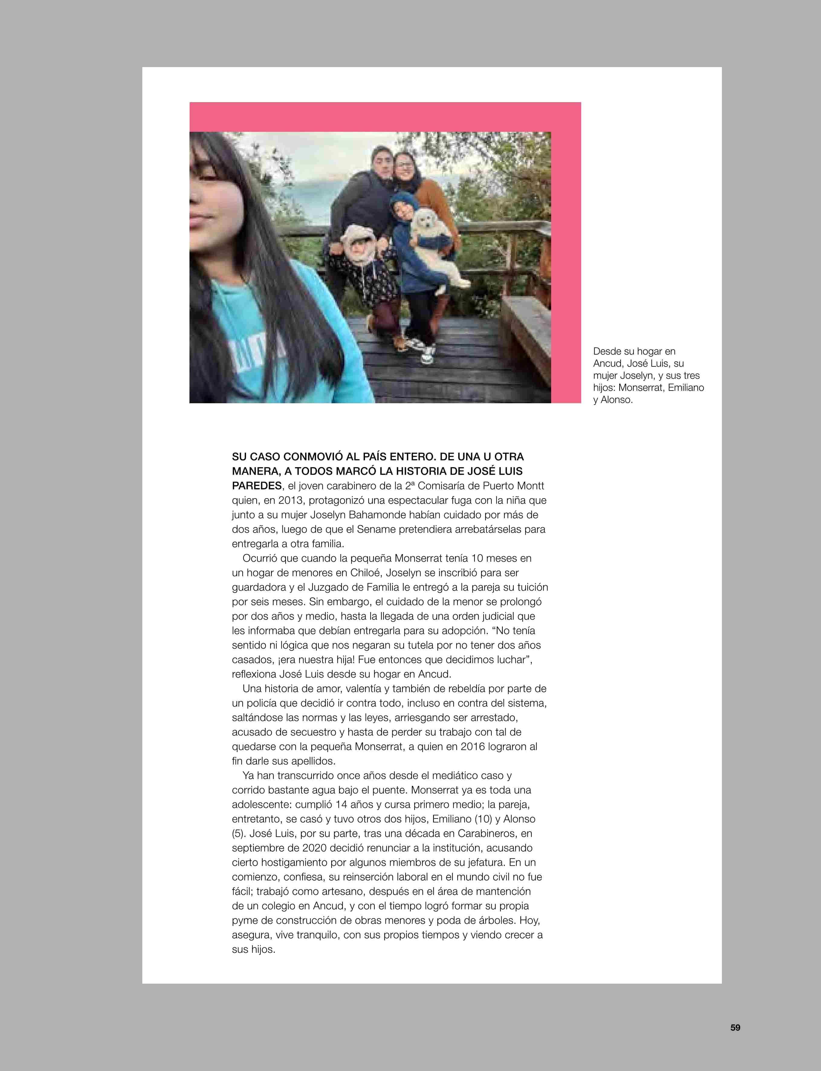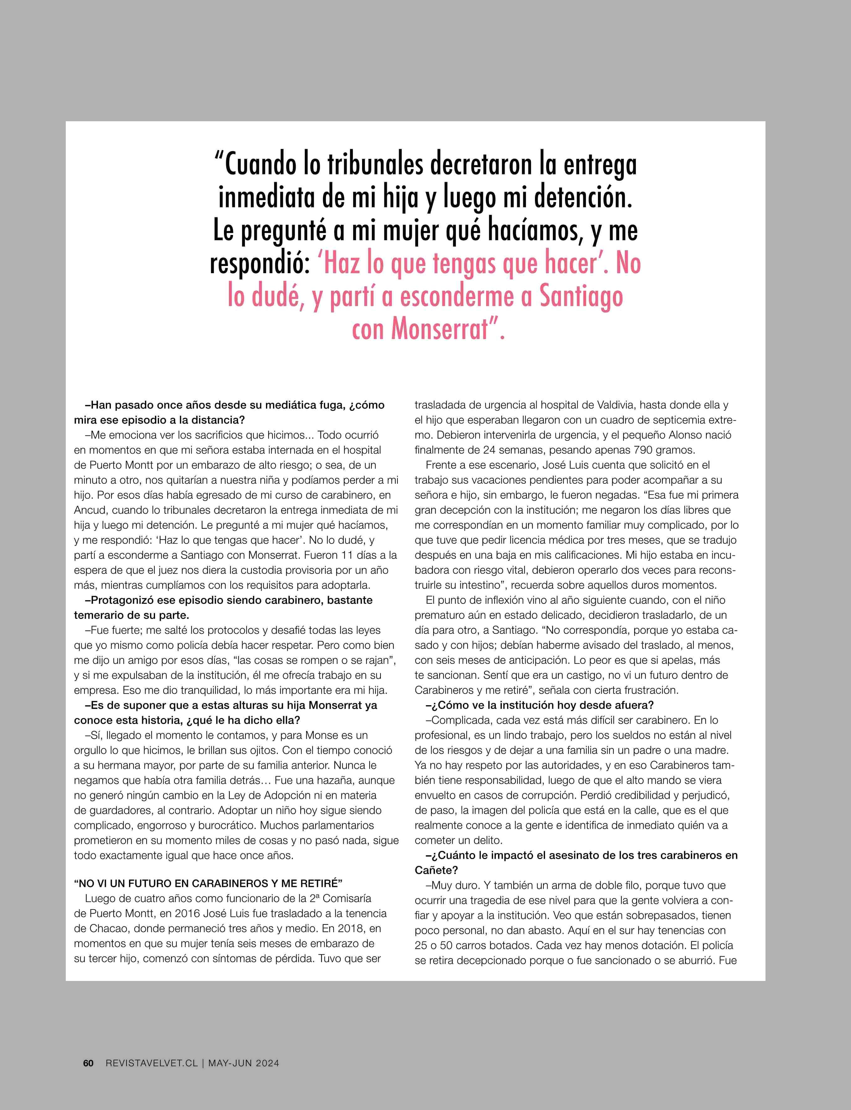 EL CARABINERO QUE HUYÓ CON LA NIÑA QUE CUIDABA 06-06-2024 Revista Velvet |