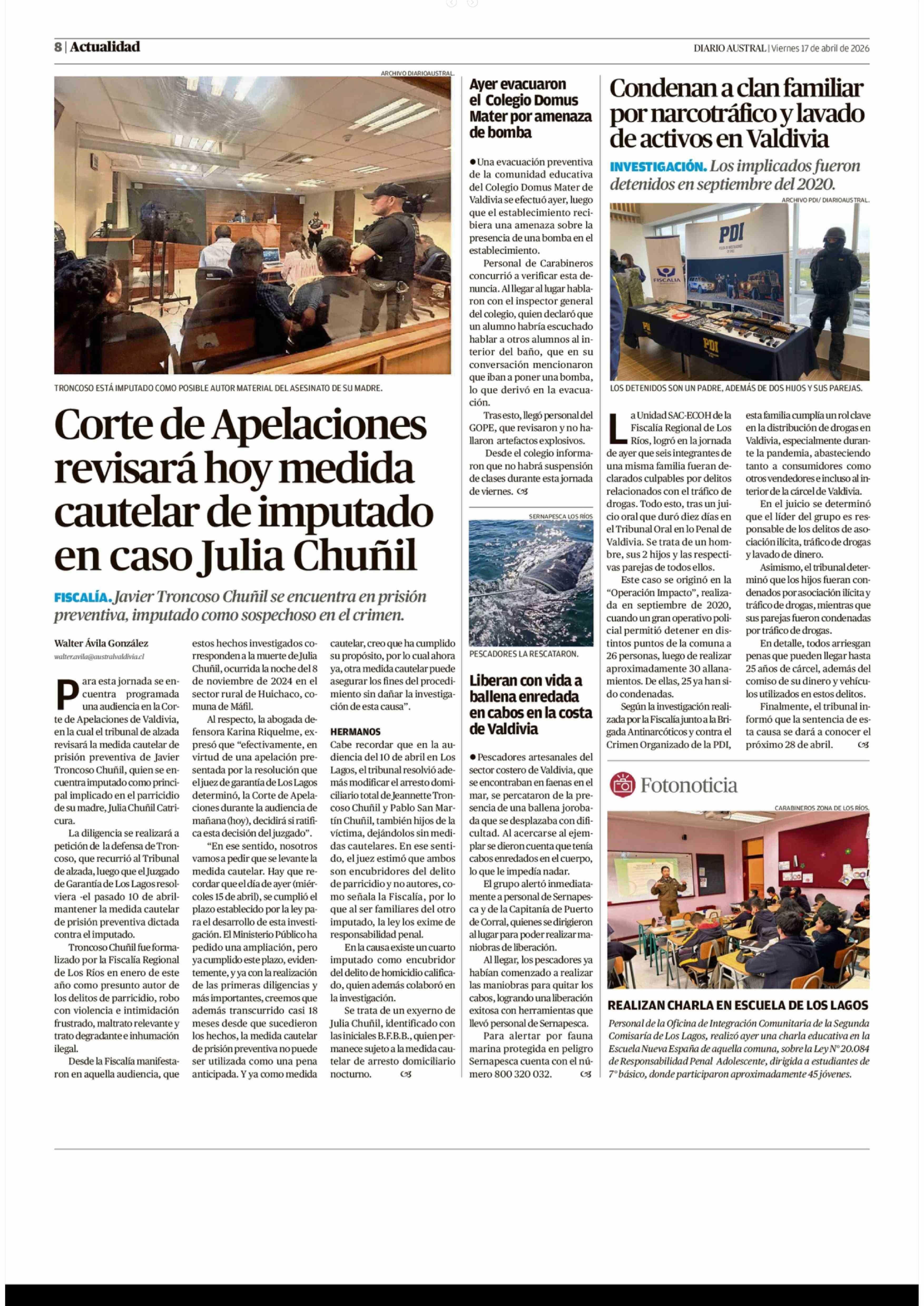 Fecha: 17-04-2026 Sector: Noticia general Región: Región de Los Ríos