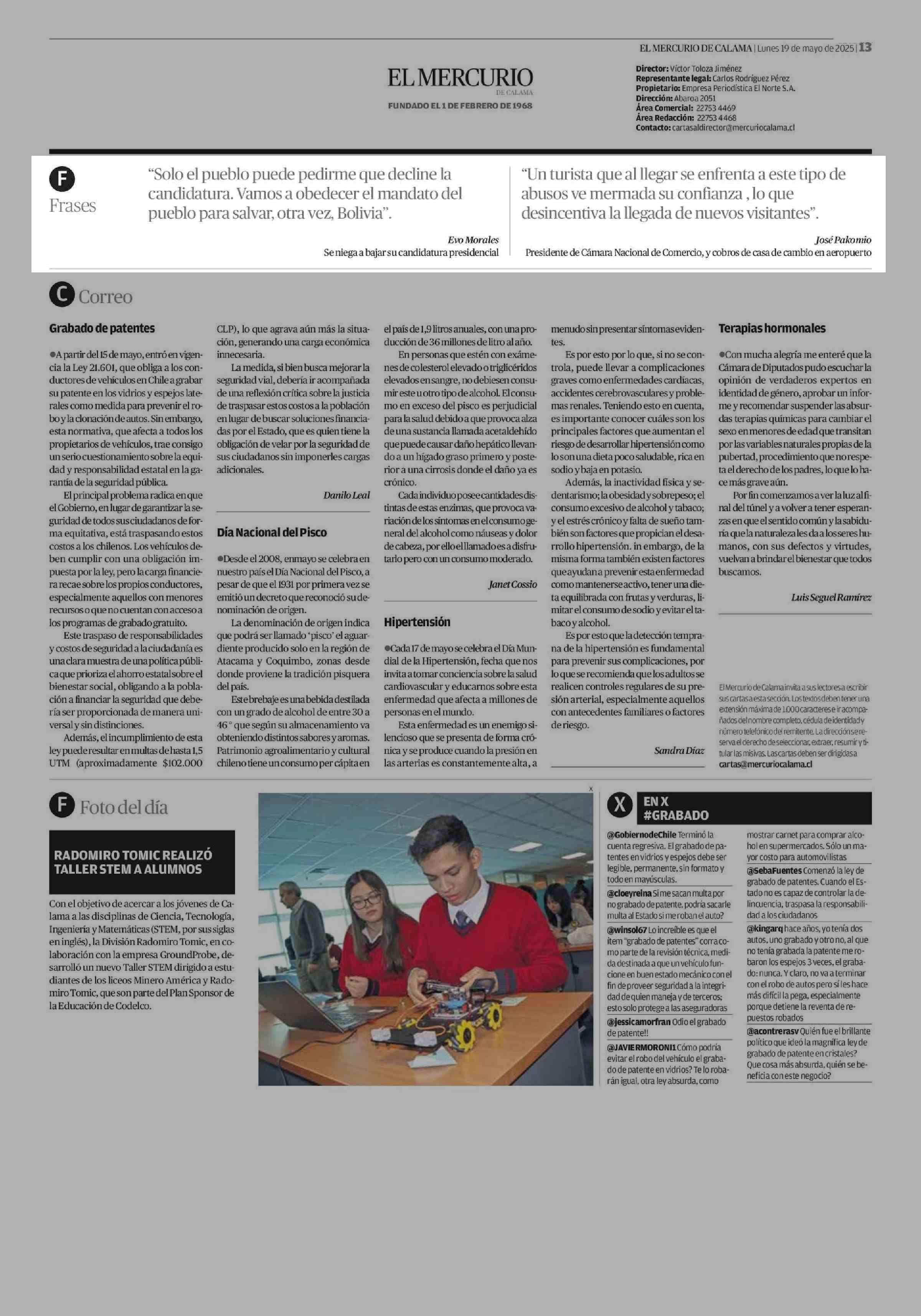 | Fecha: | 19-05-2025 | Sector: | Noticia general | Región: | Región de Antofagasta |