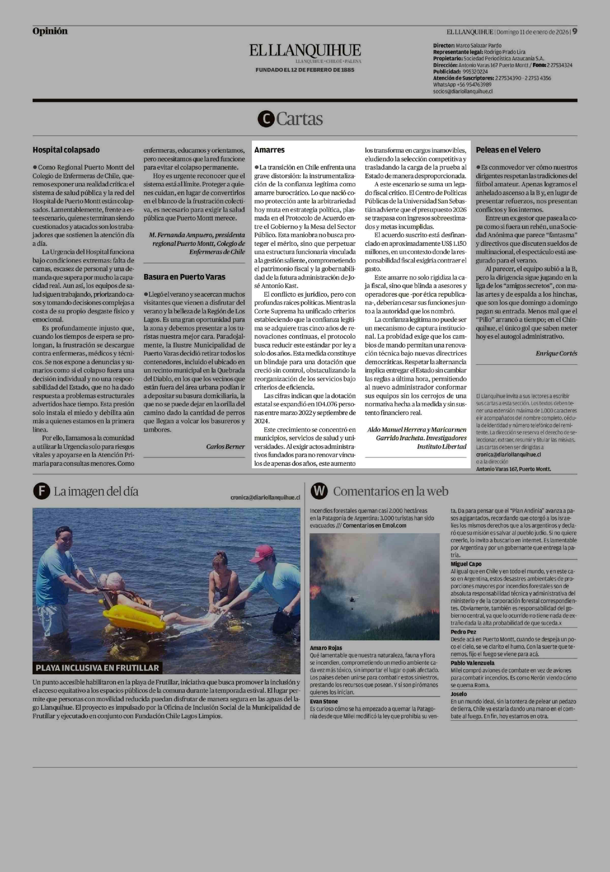 Cartas: Amarres 11-01-2026 El Llanquihue |