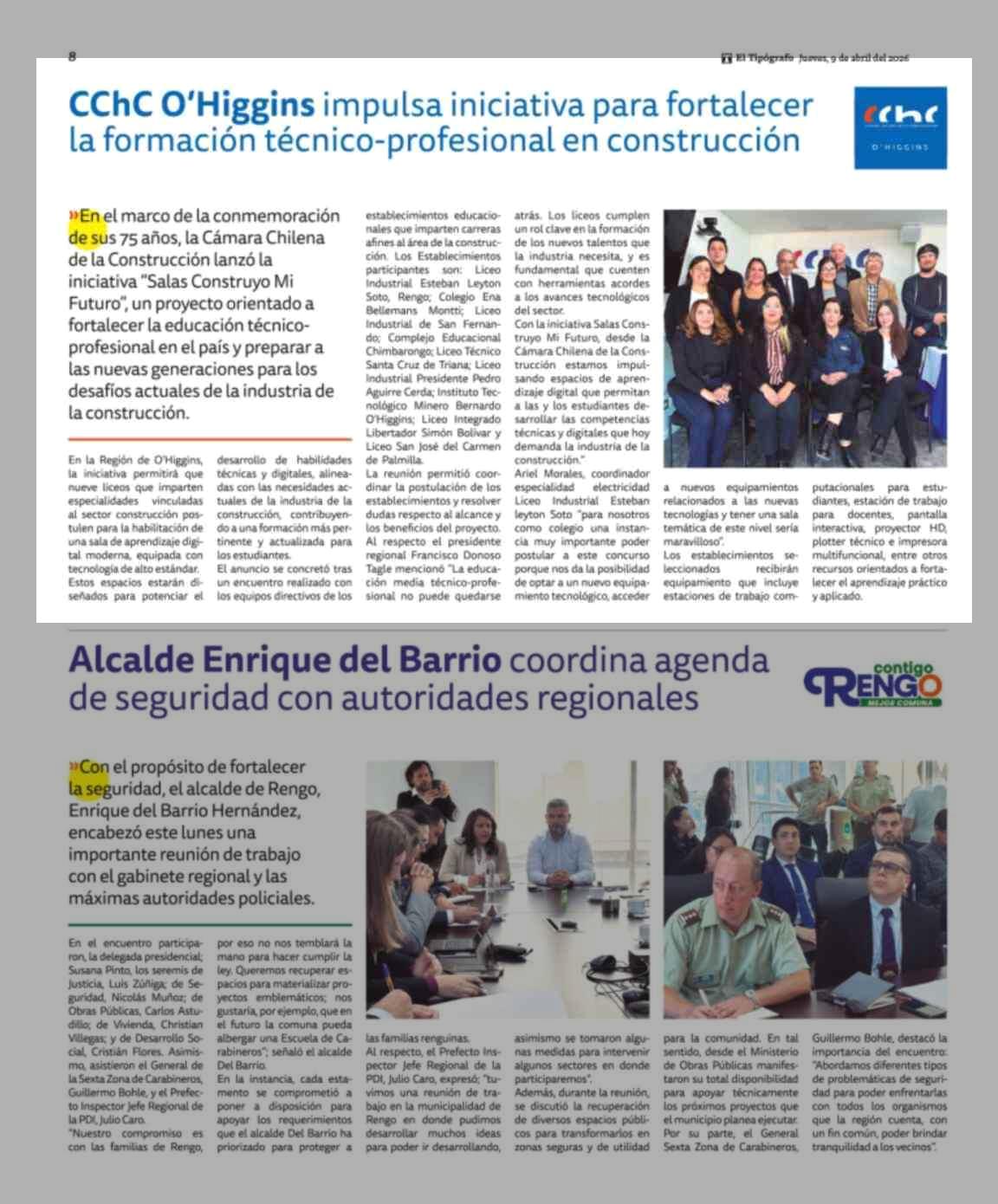 CChC O'Higgins impulsa iniciativa para fortalecer la formación técnico-profesional en construcción 09-04-2026 El Tipógrafo |
