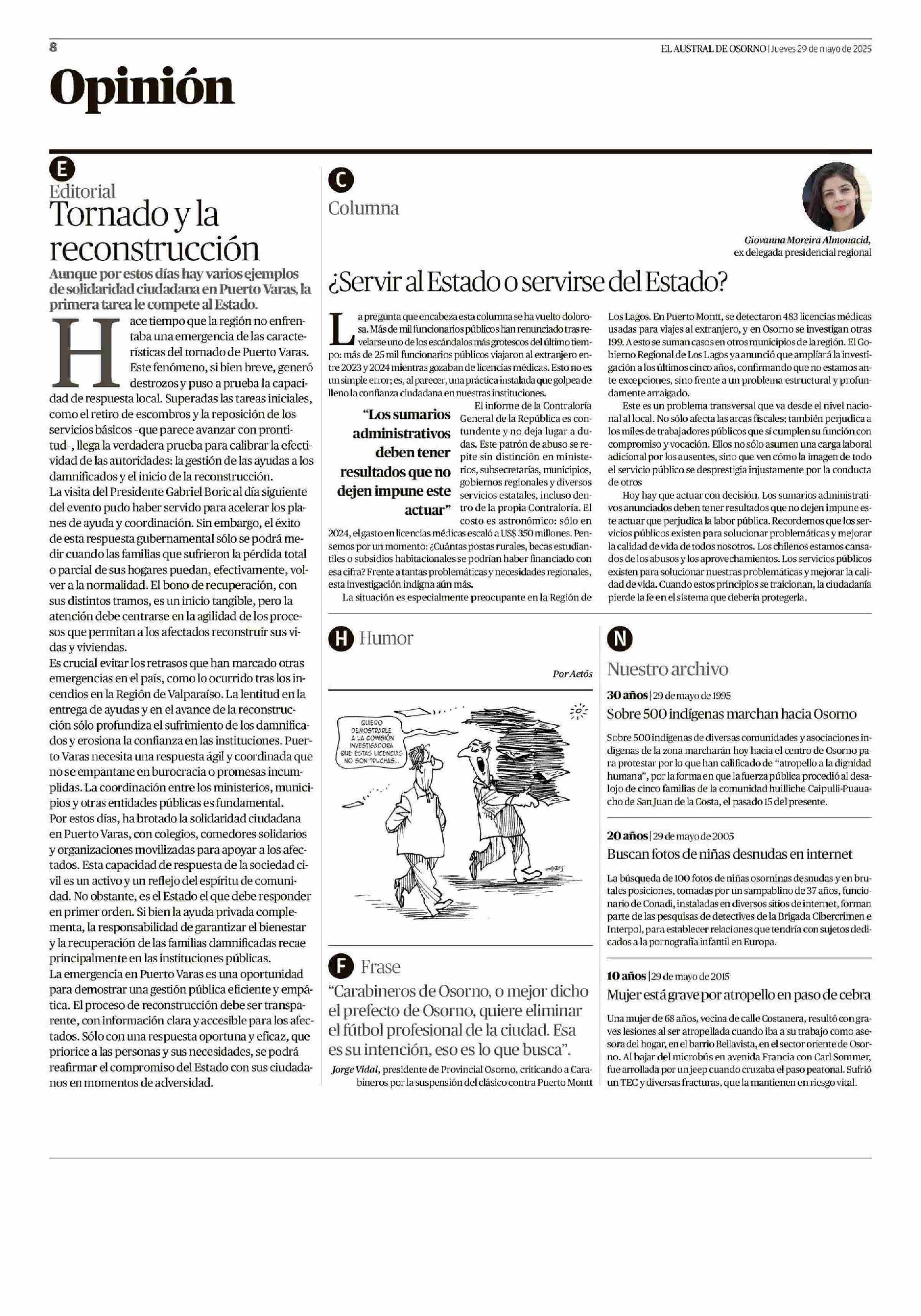 | Fecha: | 29-05-2025 | Sector: | Columnas de Opinión | Región: | Región de Los Lagos |
