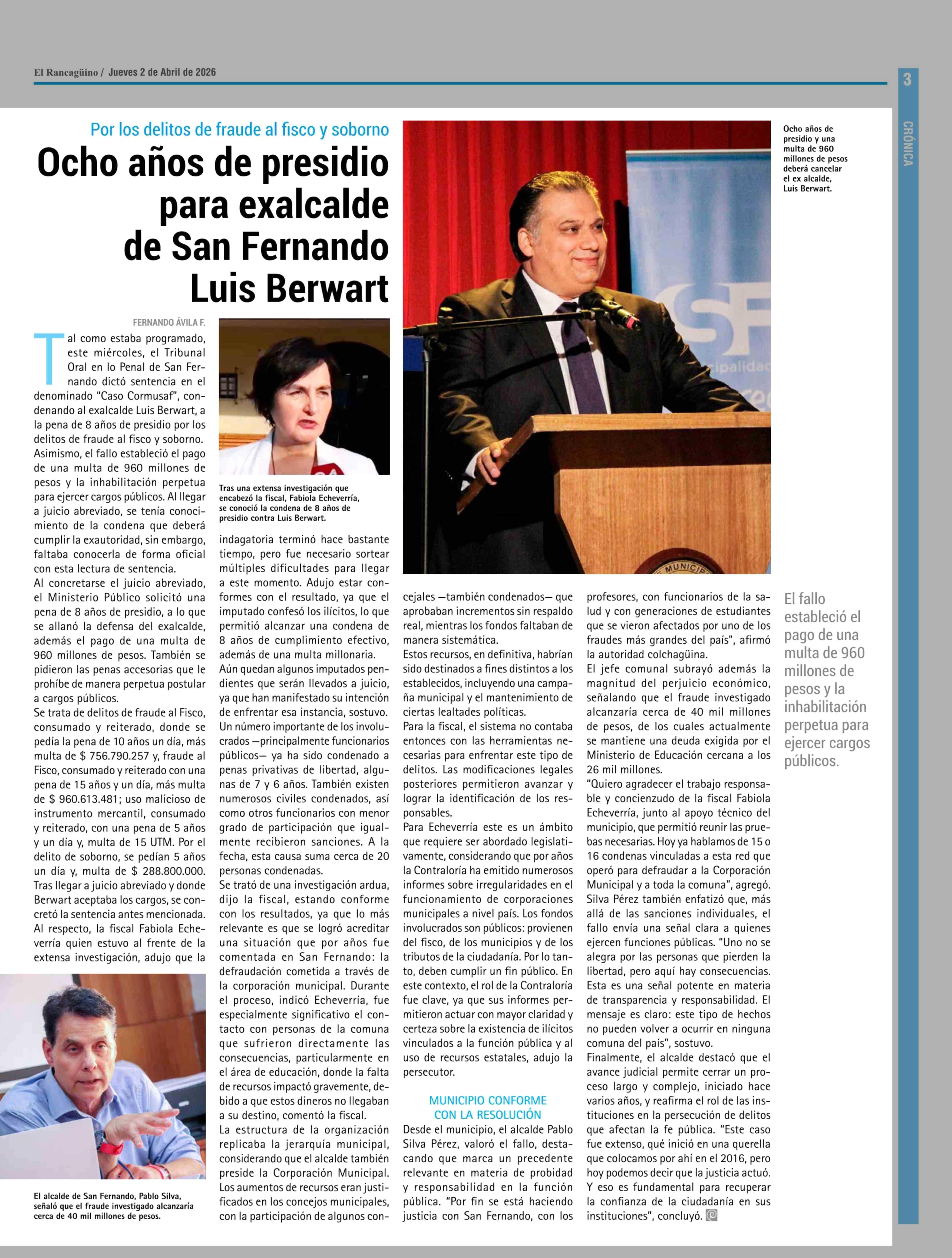 Título: Ocho años de presidio para exalcalde de San Fernando Luis Berwart