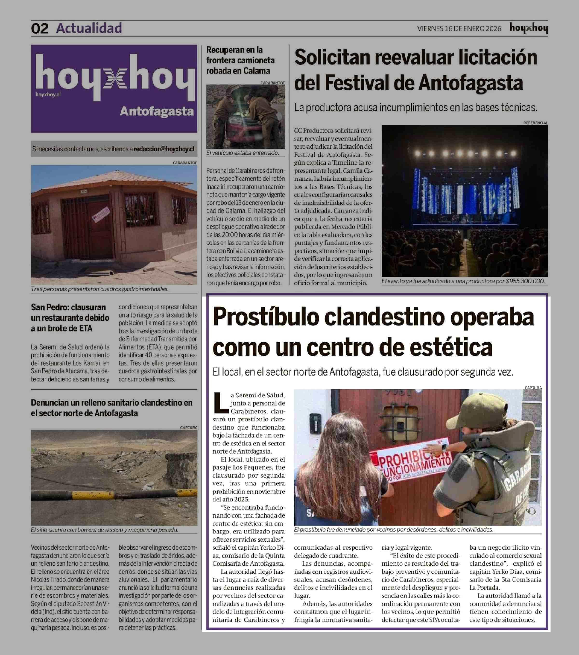 Fecha: 16-01-2026 Sector: Noticia general Región: Región de Antofagasta
