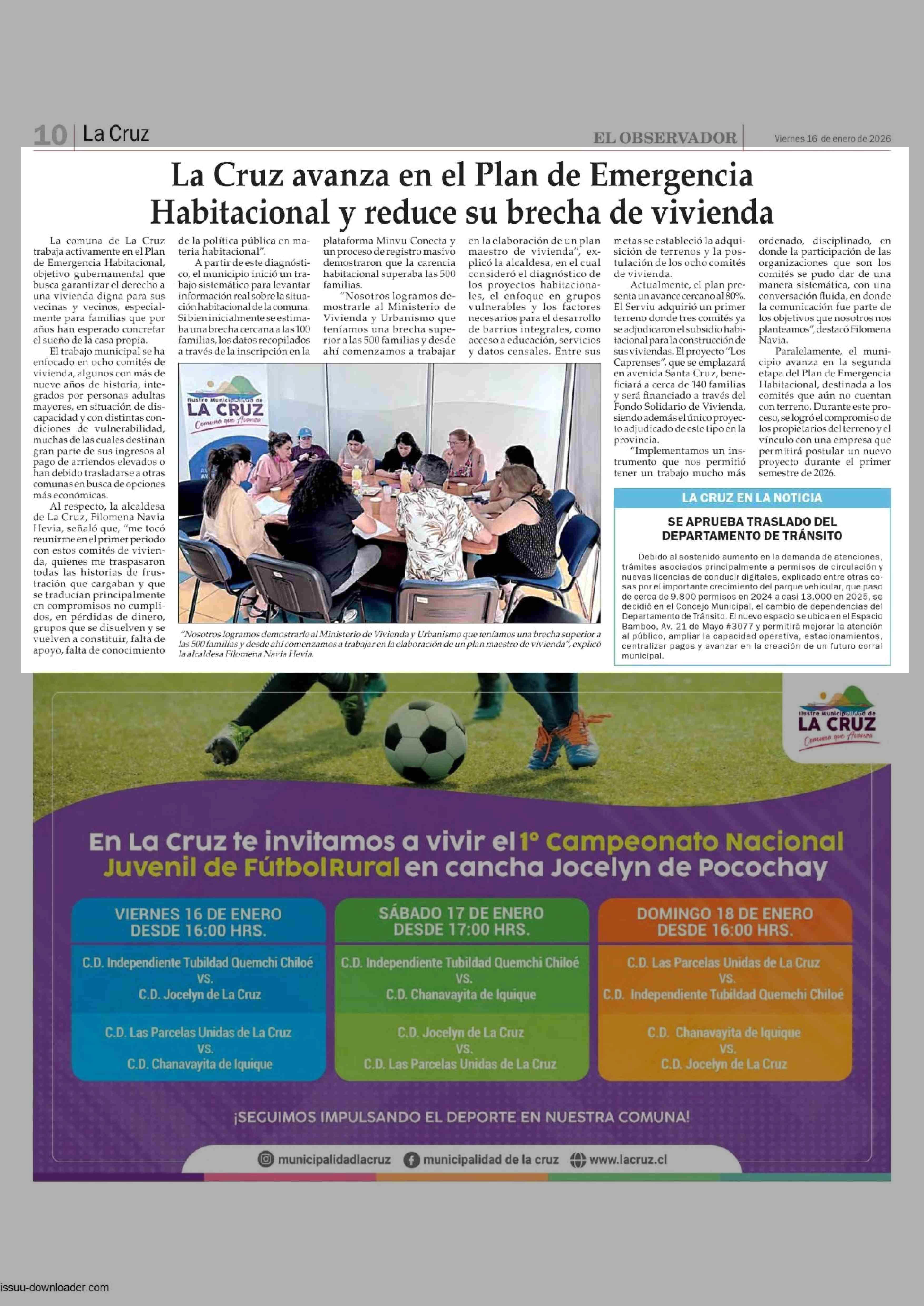 La Cruz avanza en el Plan de Emergencia Habitacional y reduce su brecha de vivienda 16-01-2026 El Observador |