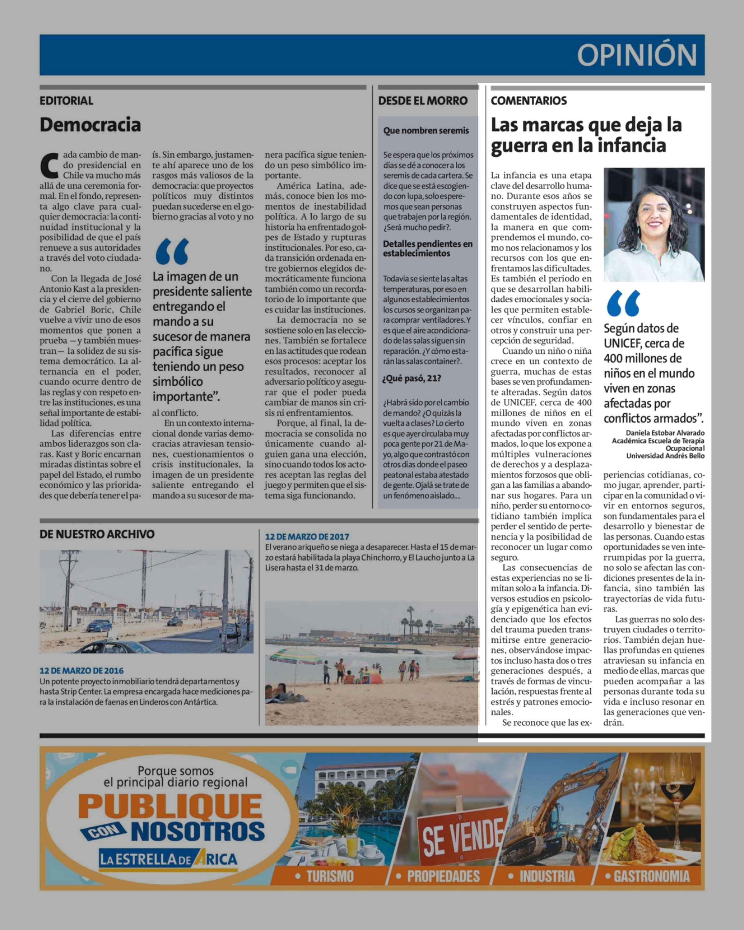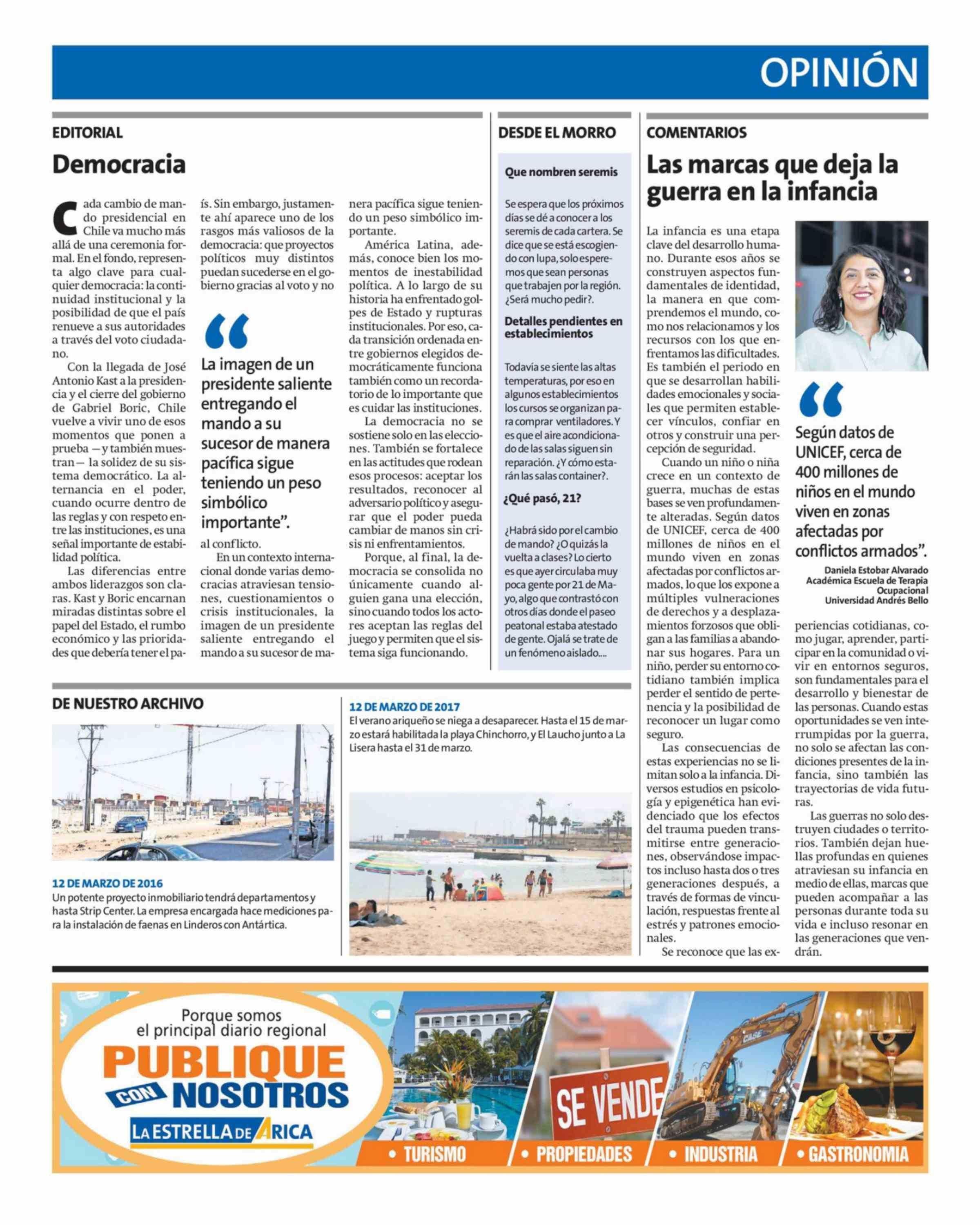 Columnas de Opinión: Las marcas que deja la guerra en la infancia 12-03-2026 La Estrella de Arica |