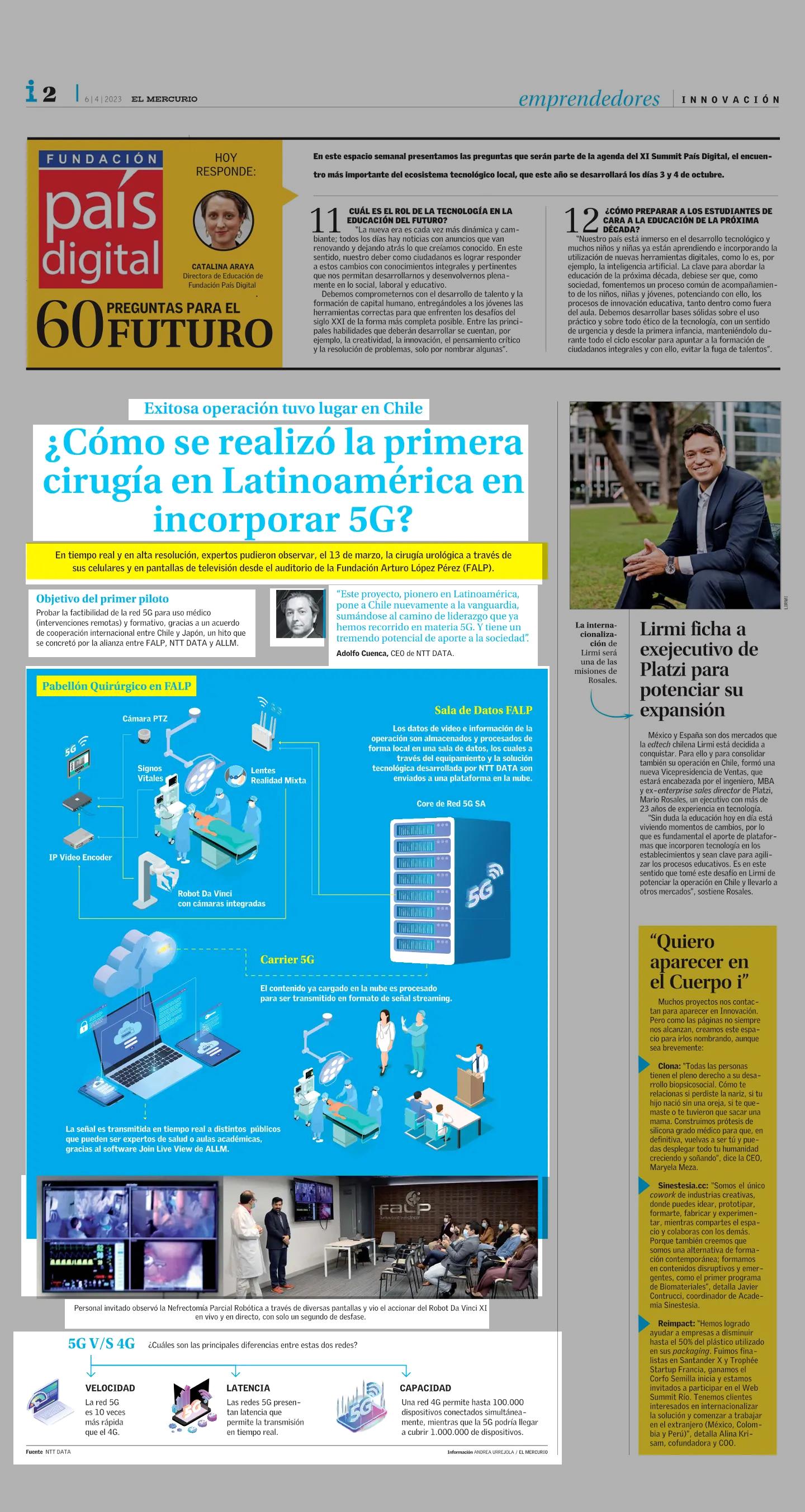 ¿ Cómo se realizó la primera cirugía en Latinoamérica en incorporar 5G? 06-04-2023 El Mercurio |