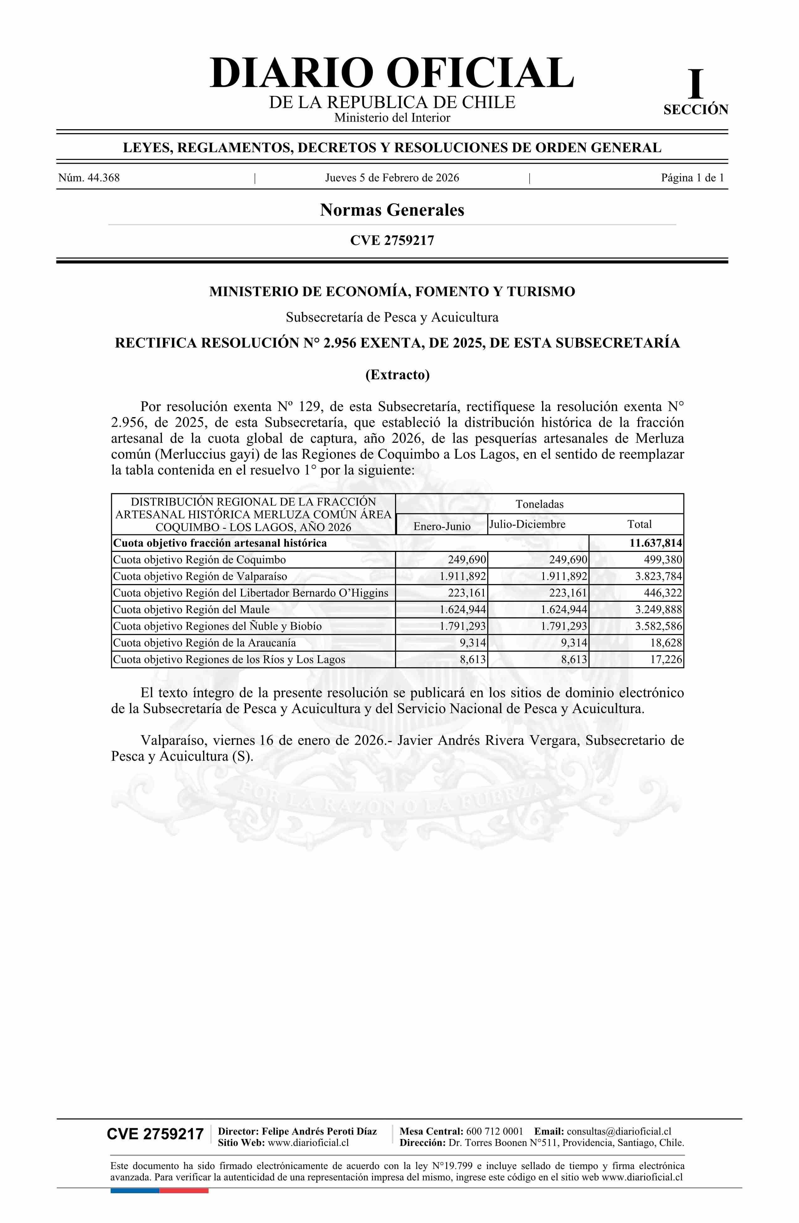Título: Extracto de resolución exenta número 129, de 2026.- Rectifica resolución N° 2.956 exenta, de 2025