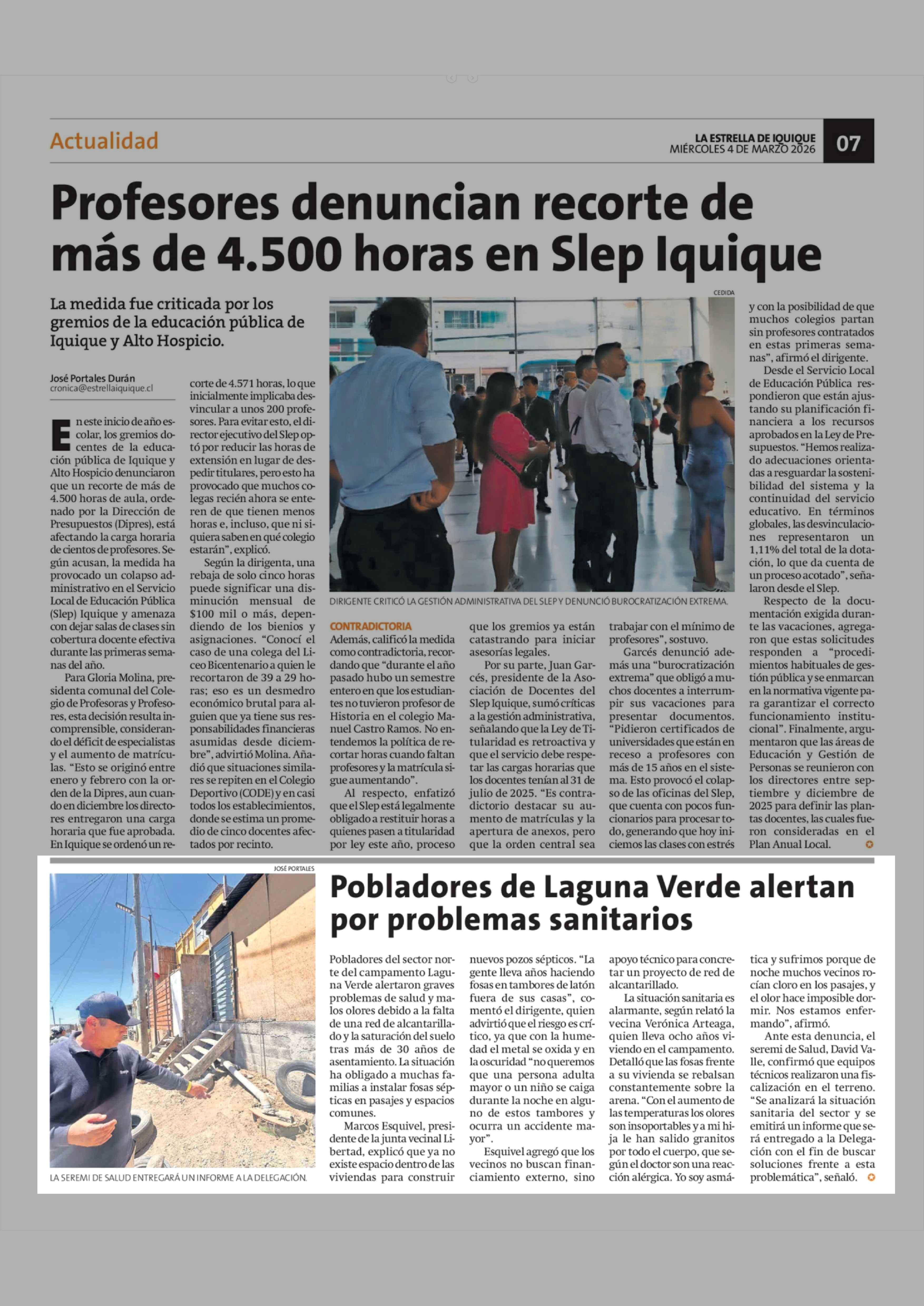 Pobladores de Laguna Verde alertan por problemas sanitarios 04-03-2026 La Estrella de Iquique |