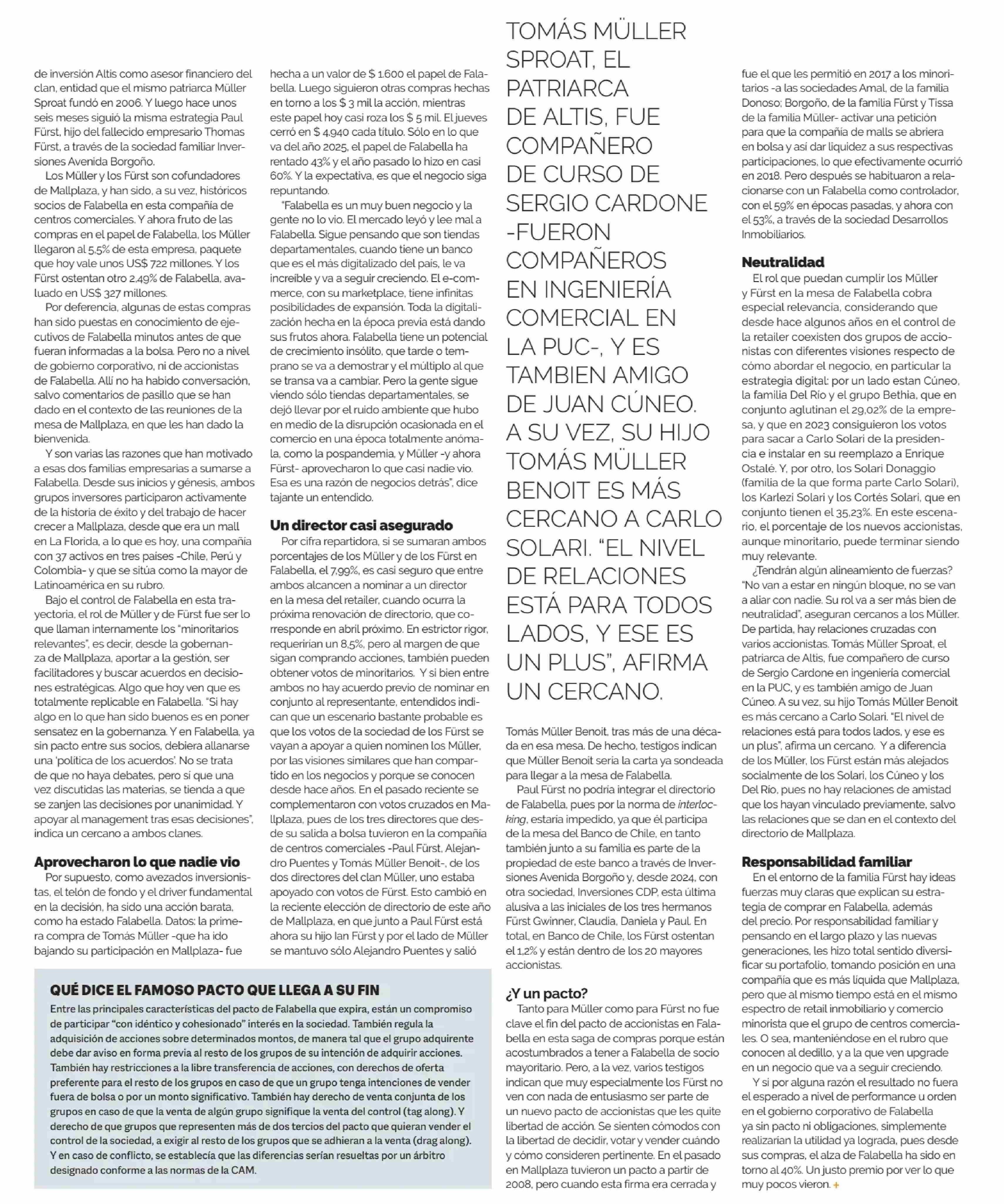 “MINORITARIOS RELEVANTES”: QUE BUSCAN LAS FAMILIAS MULLER Y FURST TRAS FALABELLA 22-06-2025 Diario Financiero |