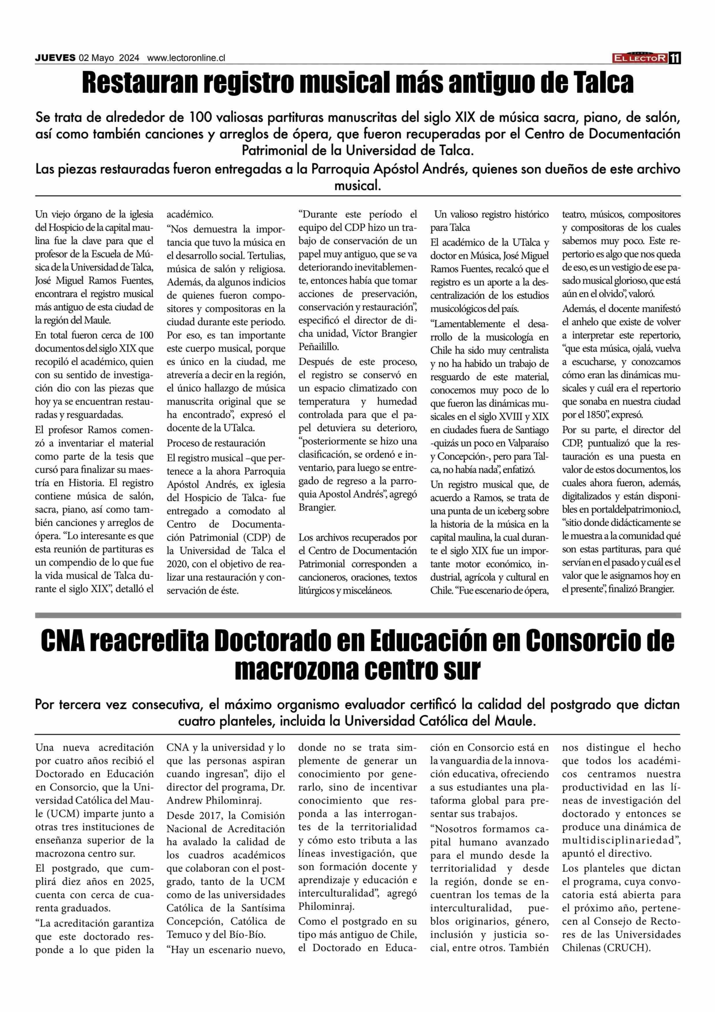 Restauran registro musical más antiguo de Talca 02-05-2024 El Lector |