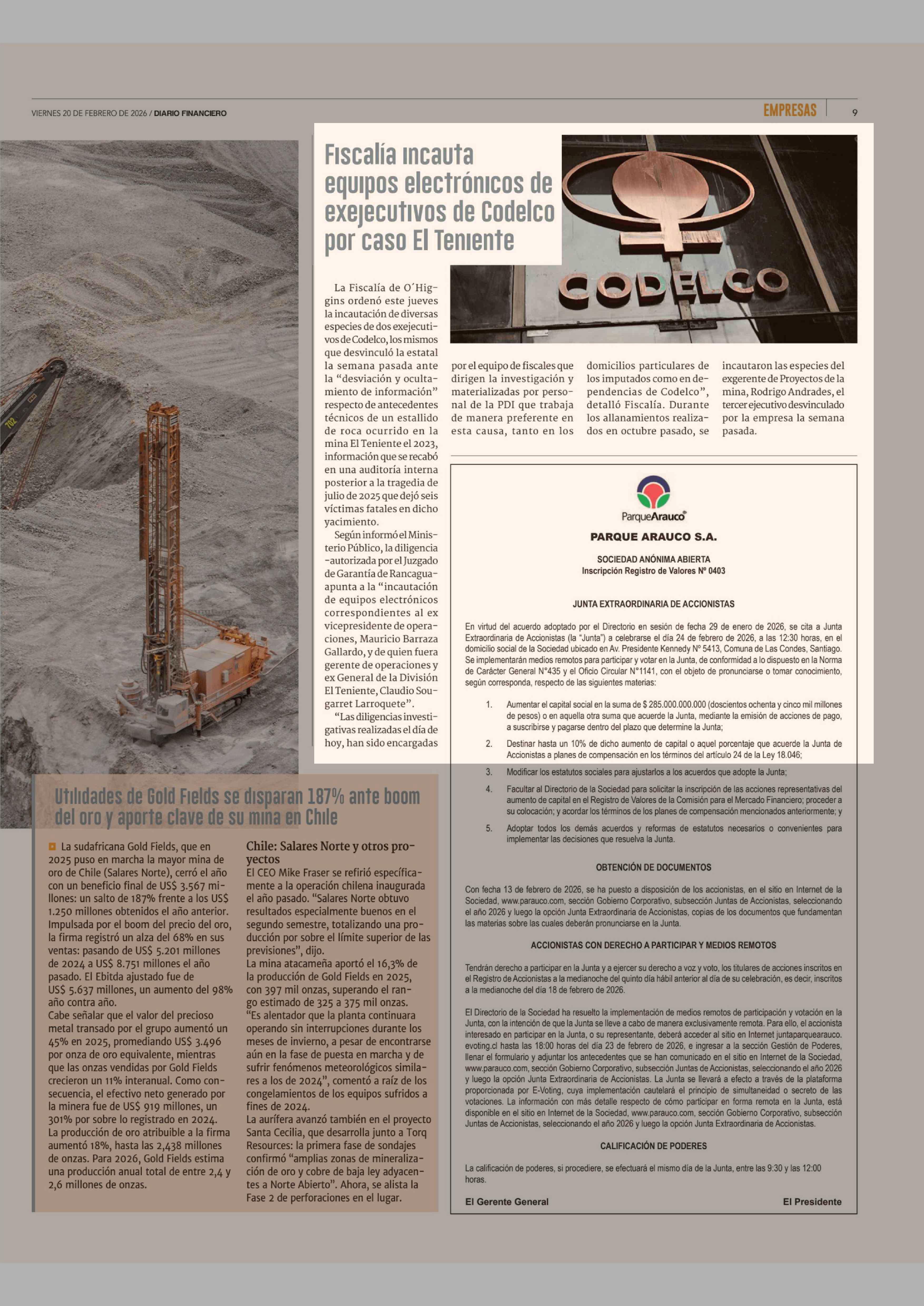 Fiscalía Incauta equipos electrónicos de exejecutivos de Codelco por caso El Teniente 20-02-2026 Diario Financiero |