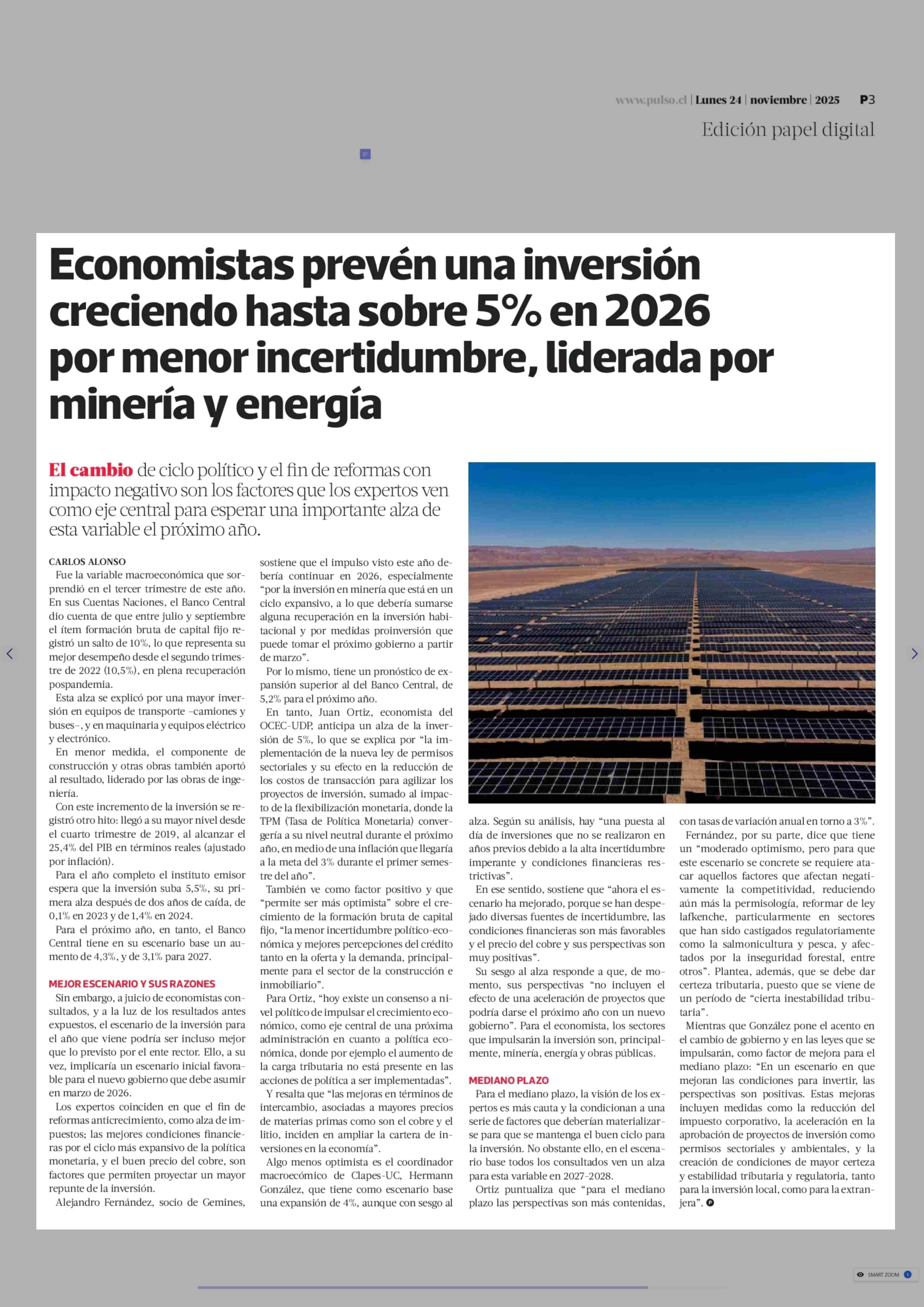 Título: Economistas prevén una inversión creciendo hasta sobre 5% en 2026 por menor incertidumbre, liderada por minería y energía